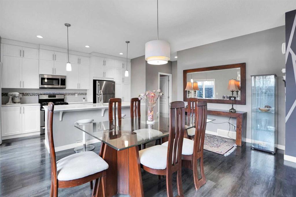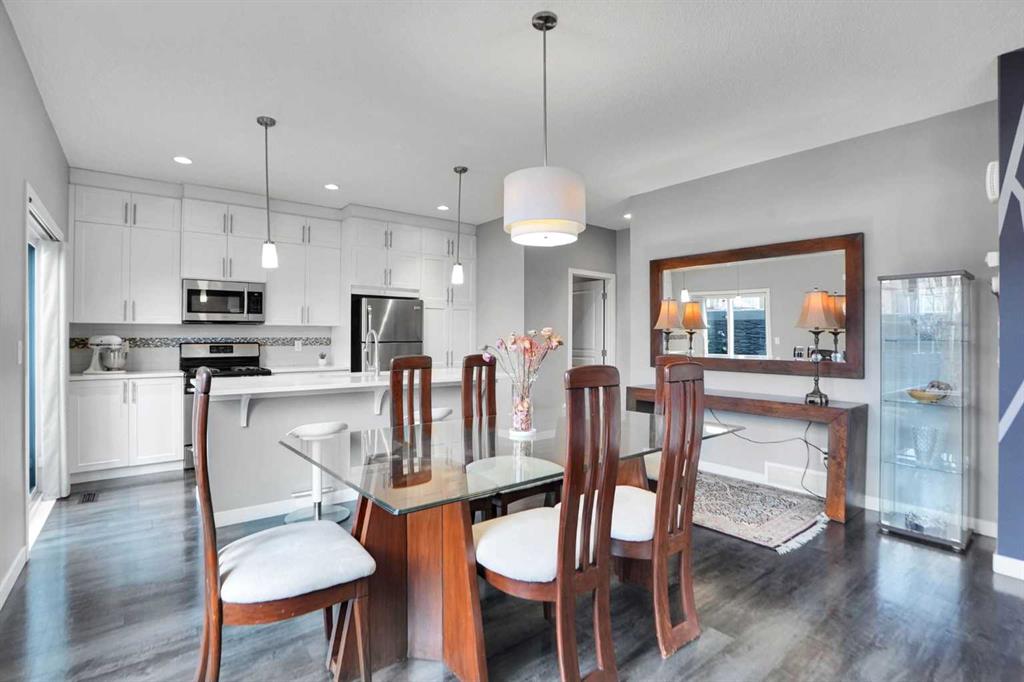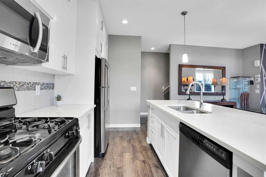 This east facing home welcomes you with an open concept layout. As you enter, you are met by a decent size foyer. You will love the gleaming LVP flooring on the main floor. Your new kitchen boasts lots of full height cabinetry and a built-in pantry, A DECENT SIZE KITCHEN ISLAND WITH QUARTZ COUNTERTOPS, all stainless steel appliances Gas Stove, Refrigerator, microwave Hood fan, Dish-washer, washer & dryer & Central A/C. The dining area is just off the kitchen with plenty of space for a large table. The spacious living room is flooded with tons of natural light. A 2-piece washroom completes the main floor.