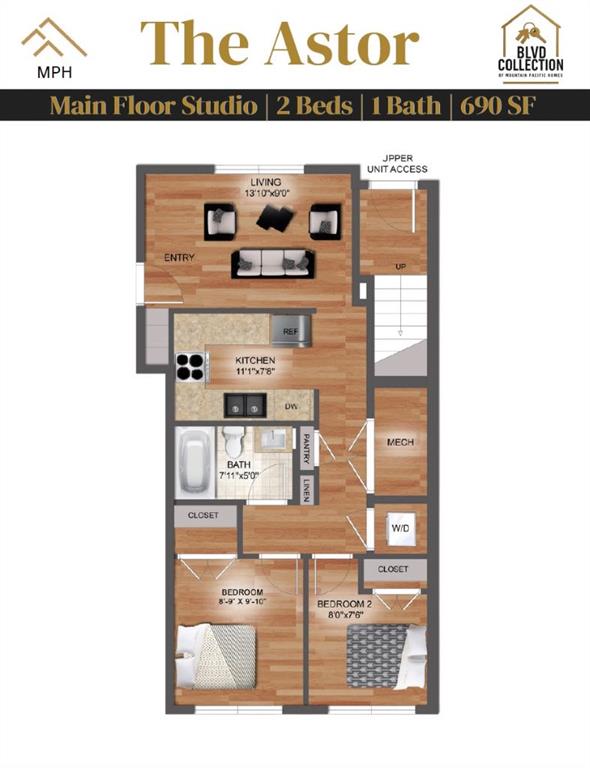 THE ASTOR – Smart Space, Exceptional Value. This well-designed main floor 2-bedroom, 1-bath unit offers 690 sq ft of efficient living—ideal for first-time buyers, small households, or investors.