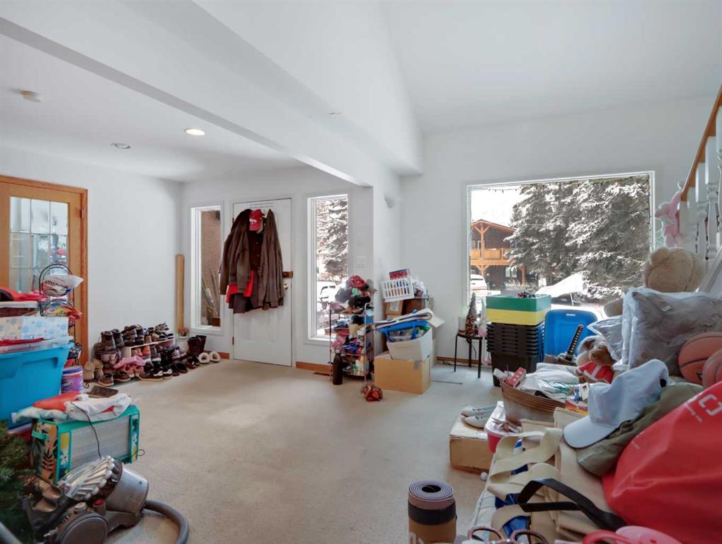 Tucked into a tranquil, almost meditative setting, this home feels miles from the bustle of downtown Canmore yet is ideally located just an easy eight-minute walk to Main Street, Safeway, and the Bow River. Offering 2,245 sq. ft. of living space, this 3+ bedroom home features a spacious main floor with a generous entry and den, open living and kitchen area with eating bar, and access to the sunny, south-facing rear deck and yard. A large formal dining room—ideal as a flex space, office, or potential fourth bedroom—along with a full bathroom completes the main level. Upstairs are three spacious bedrooms and a three-piece bathroom, with the primary bedroom enjoying ensuite privilege. Set on a 50-foot-wide lot exceeding 6,600 sq. ft., the property offers alley access to an oversized 700+ sq. ft. garage with bonus loft space. Steps to Canmore’s trail system, this location offers privacy, walkability, and lifestyle.