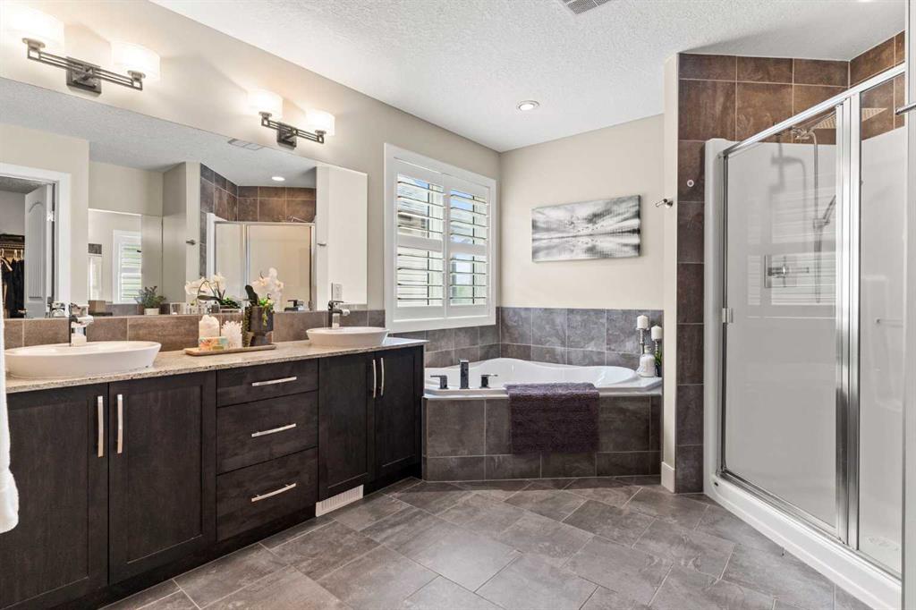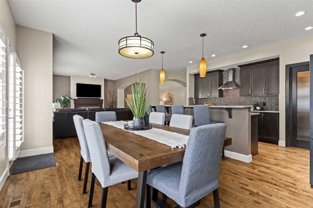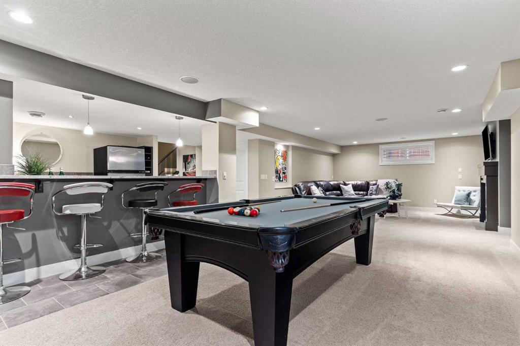 Welcome to this exceptional executive home offering nearly 4,000 sq. ft. of beautifully designed living space across three levels, perfectly located in a highly desirable community with creekside pathways, parks, schools, shopping, restaurants, and transit all close by. The main floor boasts an impressive open-concept layout with 9’ ceilings, site-finished hardwood, and custom shutters throughout. The chef’s kitchen is a true showstopper, featuring a gas stove, massive island with seating, abundant cabinetry, and a large walk-through pantry that connects to an oversized mudroom. The generous dining area flows seamlessly into the expansive living room with a cozy gas fireplace. A private main-floor office provides the perfect work-from-home space. Upstairs, the luxurious primary suite is a retreat of its own, offering room for a sitting area, a spa-inspired ensuite, and a walk-in closet the size of a bedroom. Two additional oversized bedrooms—each with their own walk-in closets—plus a spacious bonus room with another fireplace and beautiful open railings overlooking the main floor complete the upper level. The fully finished basement is built for entertaining, featuring a custom wet bar with dishwasher and extra storage, a spacious rec room with a third fireplace, and plenty of space for gatherings. A pool table is already in place, making it the ultimate hangout spot for game nights and fun with friends. A fourth bedroom and full bathroom, all completed by the builder, round out this level with professional quality. Step outside to your private backyard oasis with mature trees, a deck, patio, gazebo, and hot tub—an ideal extension of your entertaining space. Additional highlights include central air conditioning, high-efficiency furnace and hot water tanks, and a heated garage. Set on a quiet street yet close to everything, this immaculate home truly has it all—space, style, and an entertainer’s lifestyle.