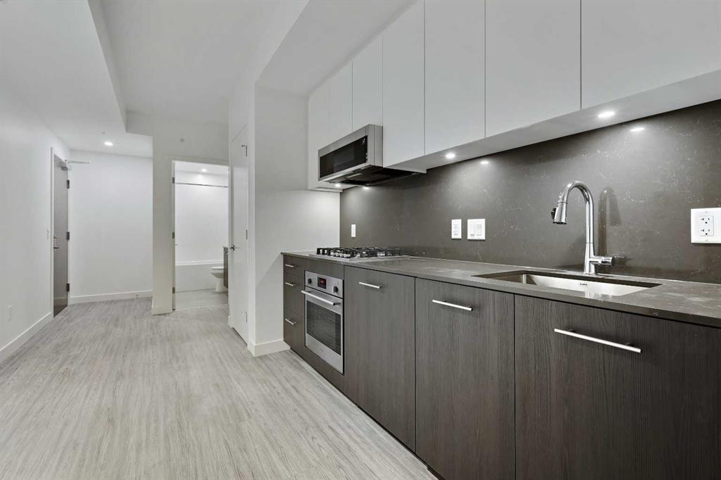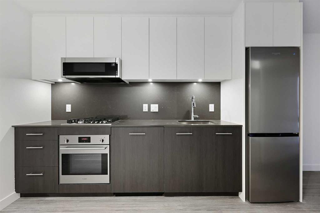 Welcome to First & Park, an elegant new address in Calgary’s sought-after Eau Claire community. This one bedroom, one bathroom home combines modern design with everyday convenience. The open-concept layout features a sleek kitchen with contemporary cabinetry, quartz countertops, and premium appliances, flowing seamlessly into the bright living space and east facing balcony. This one bedroom unit has a full bath, and in-suite laundry offering comfort and functionality. Enjoy a titled storage locker, along with building amenities including an upscale gym & yoga studio (patio just outside which also features gas bbq hookups), party lounge, modern co-working space and concierge. Just steps from the Bow River pathways, Prince’s Island Park, dining, and downtown, this is the perfect balance of style and location. Whether you’re a first-time buyer, investor, or looking for a stylish downtown retreat, this home at First & Park is the perfect opportunity to live where the city meets the river. Packages available for FURNISHED UNITS! Great unit for university students! 1 titled storage locker with unit!