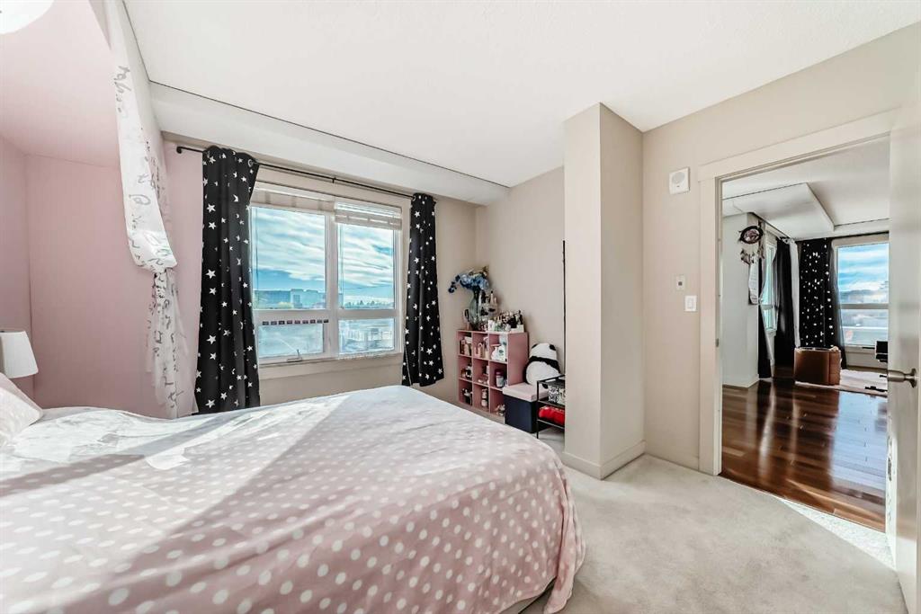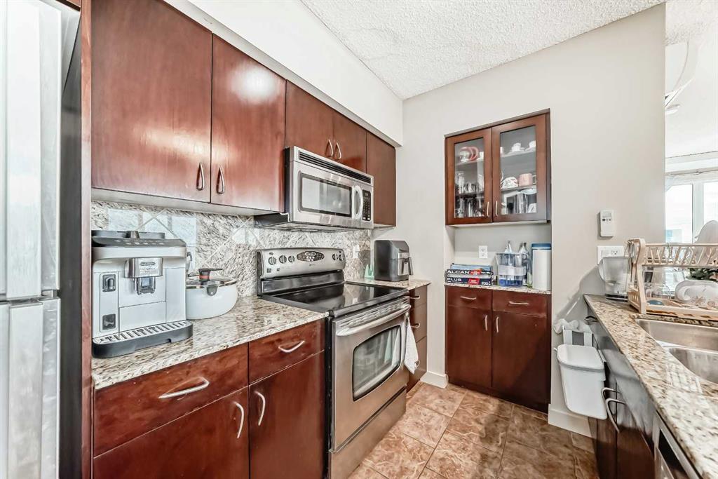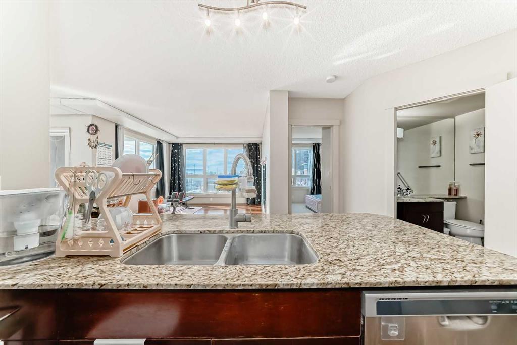 One of the largest floor plans in London at Heritage Station. Spacious end unit with open concept living/dining/kitchen. Floor to ceiling windows bathe this unit in a lot of natural light but is air conditioned so you can enjoy the views without the discomfort. Unit has opposite bedrooms for the ultimate in privacy. The large entrance welcomes you into a gourmet eat up Kitchen with stainless appliances, granite counters and an island to eat at when you don’t want to use the dining room. The kitchen is open to the living and dining area which makes it easy to engage with family or friends when making meals and sharing your time. The master bedroom has a four piece ensuite with tub/shower and the opposite bedroom has the other three piece bath with a walk in glass shower. The Balcony is private with a gas hook up for the BBQ and has a partial mountain view. Groceries are through the parking garage at the fourth level and is accessed without ever going outside. Assigned parking with in a heated garage and visitor parking is included. Heritage LRT is accessed from a walk bridge from the north side of this building for excellent access to downtown or Chinook Center for shopping. The Grocery store, pharmacy and Tim Hortons can be accessed through the 4th level of the parking garage. This condo is priced to sell,. Come and make it your New Home today!