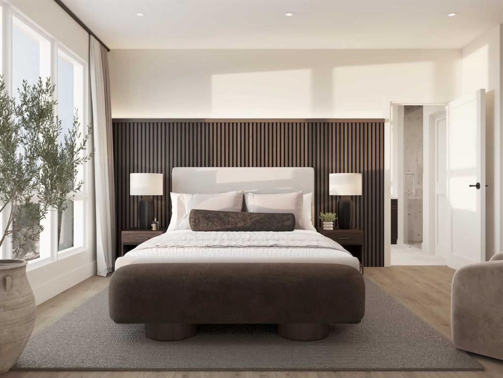**OPEN HOUSE Hours are at the Show Suite – Look for Signs** Welcome to Unit 811 in the boutique Hortus Building at Canmore Renaissance, ideally located along Three Sisters Parkway just minutes from Stewart Creek Golf Course and surrounded by the Rocky Mountains. This 1st-floor 2-bedroom, 2-bathroom residence offers 930 sq ft of well-designed interior space paired with an impressive 160 sq ft private walk-out patio, perfect for morning coffee, entertaining, or easy pet access. The open-concept kitchen, dining, and living area is finished with quartz countertops, Bosch panel-ready appliances, stained and painted millwork, and an LG washer and dryer. Flooring throughout includes engineered hardwood, porcelain tile, and luxury vinyl tile, delivering both style and durability for mountain living. The primary suite features a walk-in closet and a private ensuite, while the second bedroom and full bathroom provide flexibility for guests, family, or a home office. The thoughtful layout offers excellent separation between bedrooms and living areas, making the space feel larger and more functional. Hortus is a pet- and kid-friendly building with access to premium shared amenities in the nearby Abruzzo Building, including underground parking, a fitness centre, and a resident recreation lounge. With only 8 luxury residences in the Hortus Building, this is a rare opportunity to secure a brand-new ground-floor home in one of Canmore’s most desirable communities. Contact us for pricing, availability, and private showings.