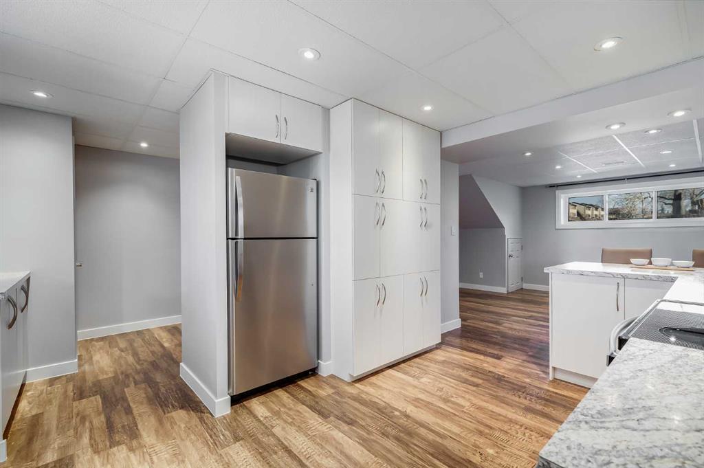 Located in the family friendly community of Ranchlands, this four-bedroom, two full bathroom bi-level home offers over 1,900 square feet of developed living space and includes an illegal suite, offering flexibility for a variety of living arrangements. A front tandem driveway allows for convenient off-street parking, and the home was newly sided in 2024 with James Hardie board, adding long-term value. The main floor is filled with natural light from large windows that brighten the spaces throughout the day. The living room offers a comfortable area to relax and unwind, while the U-shaped kitchen and dining area are positioned together to create a functional flow. The kitchen features ample counter space, abundant storage, and a window overlooking the backyard. Sliding doors off the dining area open onto a raised deck, providing an easy connection to outdoor space. This level also includes a generously sized primary bedroom, a second bedroom, a four-piece bathroom, and its own laundry for added convenience. The lower level is developed as an illegal suite with a separate entrance, offering privacy and flexibility. It includes two bedrooms, a four-piece bathroom, and a well-equipped kitchen complete with stainless steel appliances, extensive cupboard and counter space, and an island with seating. A comfortable living and dining area completes the space, along with access to a lower patio, additional storage, and dedicated laundry. The backyard is south-facing and thoughtfully arranged, with a sloped landscape that provides depth and character. A large grassy area is complemented by mature trees, creating a sense of privacy and a quiet outdoor setting. Alley access adds functionality, while new fencing on three sides and a storage shed contribute to both usability and organization. Recent upgrades enhance the home’s efficiency and overall condition. All windows and exterior doors were replaced in 2024 and feature triple-pane glass with a transferable 25-year warranty. The roof, including asphalt shingles, gutters, and flashing, was also completed in 2024. Attic insulation has been topped up, and the furnace has been recently serviced. Additional updates include a new upstairs washer and dryer in 2026, an updated refrigerator, and a one-year-old dishwasher installed in 2025. The location offers easy access to everyday amenities and recreation. Nearby, the Ranchlands Community Association features an outdoor rink, while Ranchlands Community Park includes tennis courts, baseball diamonds, and open fields. Ranchlands and St. Rita schools, along with nearby playgrounds, are within walking distance. Major routes including John Laurie Boulevard, Crowchild Trail, and Stoney Trail make commuting straightforward, with quick access to the mountains. Outdoor enthusiasts will appreciate being a short drive from Nose Hill Park, while shopping, dining, and services are available at Crowfoot Crossing, home to the YMCA Calgary and the Calgary Public Library. Check out the 3D Tour!