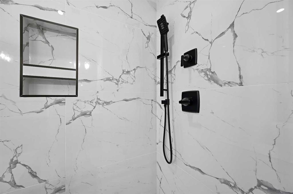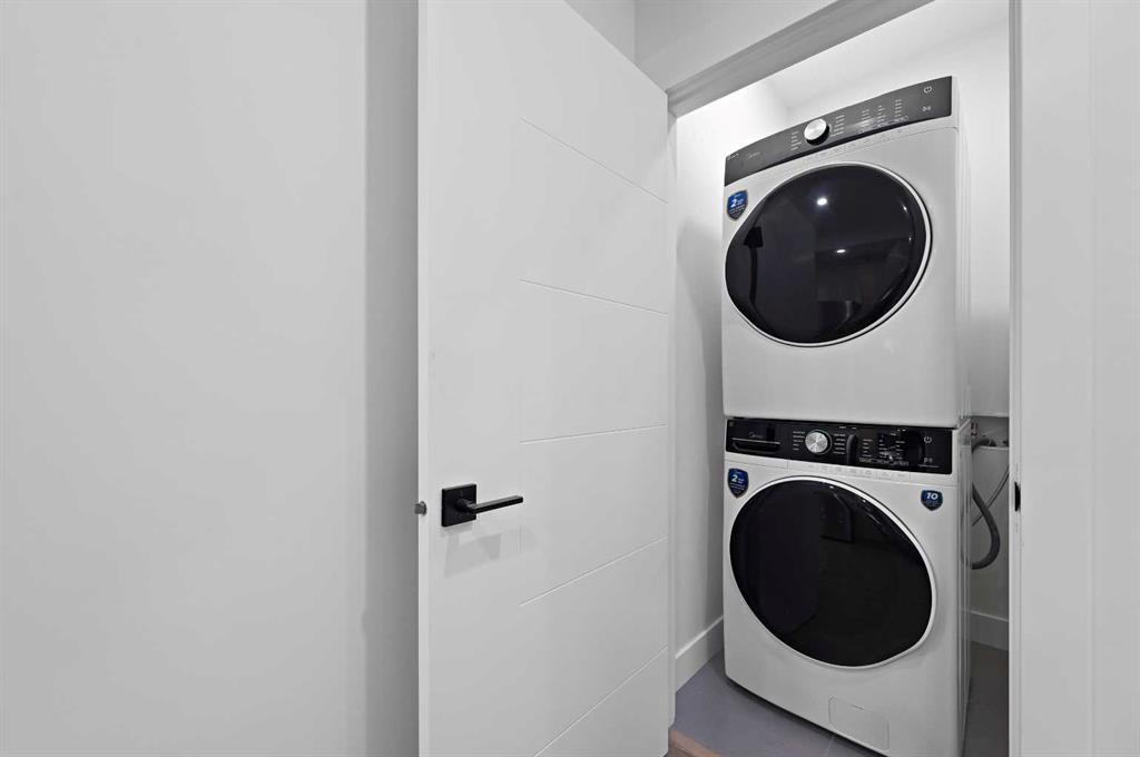 Calling all Investors! Looking for a brand new SXS Duplex with legal basement suites? This 8112 unit can be sold together with attached 8114 to provide an excellent cash flowing opportunity with the convenience of having all construction materials and components still under New Home Warranty. Both 8112 and 8114 are rented on long term leases with tenants who would prefer to stay. This unit rents monthly at $2900 for the upper suite + 70% util. and $1250 + 30% util. for the lower suite. Amazing home boasting elevated design and incredible functionality, featuring a legal 2-bedroom basement suite and a sunny south exposed front with expansive valley views from the upper floor. Every detail was thoughtfully selected, from the wide-plank modern floors to the curated lighting and premium finishes throughout. Step inside to a bright, open-concept main floor with 10′ ceilings, oversized windows and neutral tones that create an airy, inviting vibe. The large, well-lit dining room is perfect for bigger families and/or hosting guests and shows off a vibrant and colourful feature wall, which flows seamlessly into a designer kitchen featuring modern warm toned cabinetry, paired with beautifully coloured glass backsplash, quartz countertops, matte black hardware, a huge walk-in pantry with built-in shelving, and a perfect-sized center island with bar seating with more natural wood tones, bringing everything together beautifully. The upgraded stainless steel appliance package includes an oversized sub zero fridge with french doors, a gas cooktop with stylish hood fan, and a thoughtfully placed wall oven and microwave. The rear living room is wide and spacious featuring additional large windows plus a cozy gas fireplace with stone surround and custom mantle, and which leads you out to the large backyard, which features an oversized concrete pad, perfect for end of the day BBQ’s and lounging. An enclosed mudroom with a large closet area and a sleek powder room that comes with a raised matte black sink complete the mainfloor. Upstairs contains the three large bedrooms, all with trayed ceilings, including the primary bedroom which is a true retreat that features a large walk-in closet with several custom built-ins plus a hotel like ensuite. Enjoy heated tile flooring, dual sinks, quartz countertops, matching tile surrounds, plus a free standing soaker tub and an oversized glass shower with rain shower head and roughed-in for steam. The upper laundry room comes with a sink, quartz countertops, additional wood toned cabinetry, and is situated beside the stylish full bathroom which features a tiled tub/shower combo. Downstairs features the thoughtfully designed legal 2 bedroom suite and features 9′ ceilings, luxury vinyl plank flooring, wonderfully warm toned cabinetry, stainless steel appliances and lots of pot lighting. A full bathroom with elegant tile is also featured plus a dedicated laundry room, separate side entrance and storage, making this perfect for rental income.
