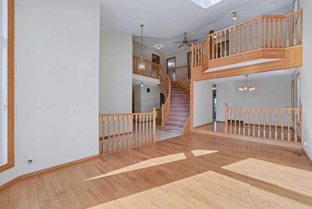 This Executive Home with 4 Bedrooms Up and 3 Bathrooms…is steps from the school! The home is perfect for a larger family needing extra space! The open living-dining room concept features vaulted ceilings to maximize light/space and the grand curved staircase offers such a magnificent “executive” feel to this large home! The kitchen is spacious and opens to the eat-in nook and adjacent great room with fireplace and bar area. The upper level showcases a loft area – perfect for a home office or homework area. With 4 bedrooms up, this home offers space that not all other homes can offer. The master suite is grand in style, with its “spa-like” ensuite bathroom, including a jetted tub and stand-up shower. Main level laundry room. Newer windows throughout. The lower level has 2 furnaces and also has “PEX” plumbing – no poly B! The large yard offers much opportunity for kids to play.
