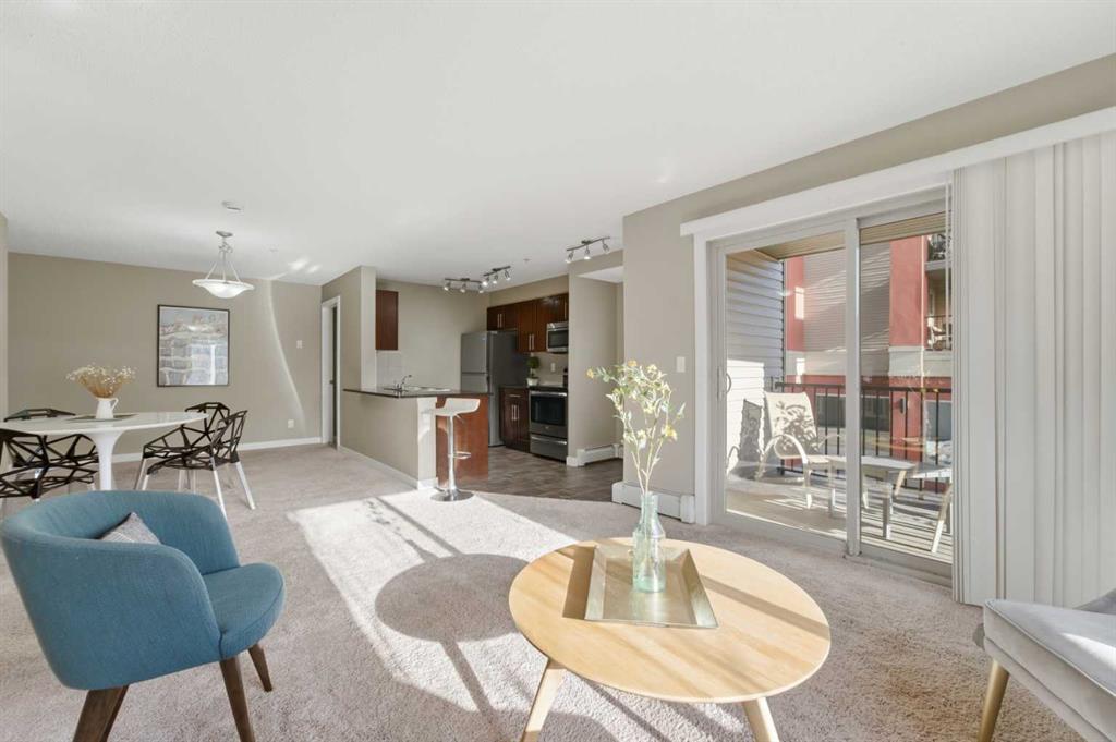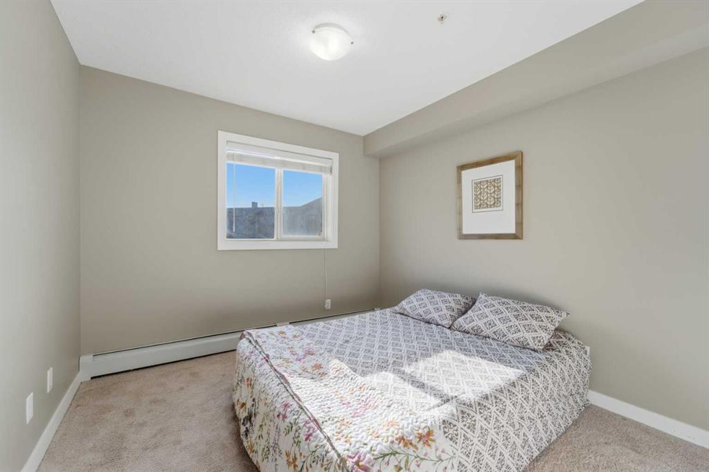 OPEN HOUSE: this Saturday and Sunday (May 2-3) 11 AM to 1:30 PM. Welcome home to this two-bedroom, two-bathroom corner unit in the highly sought after Creekside Crossing community. Located on the second floor with north and east exposure, to be cool in summer and provide a lovely cross breeze. The corner balcony, provides additional living space and a great place to relax after a long day. This open concept layout, has room for a home office near the entry, large living and dining area with 2 bedrooms, with their own ensuites located on the opposite end of suite, perfect for privacy and ideal for sharing with a room mate. Upgraded kitchen with granite counter tops, steel appliances and breakfast bar. Additional conveniences include in suite laundry, ample storage, and a heated, titled underground parking stall for year round comfort. Located in Downtown Airdrie; with a walk score of 82… — steps from grocery stores, cafés, restaurants, fitness facilities, medical services, parks, pathways, and transit. Available for immediate occupancy! Why rent when you can own? Book your private showing today .