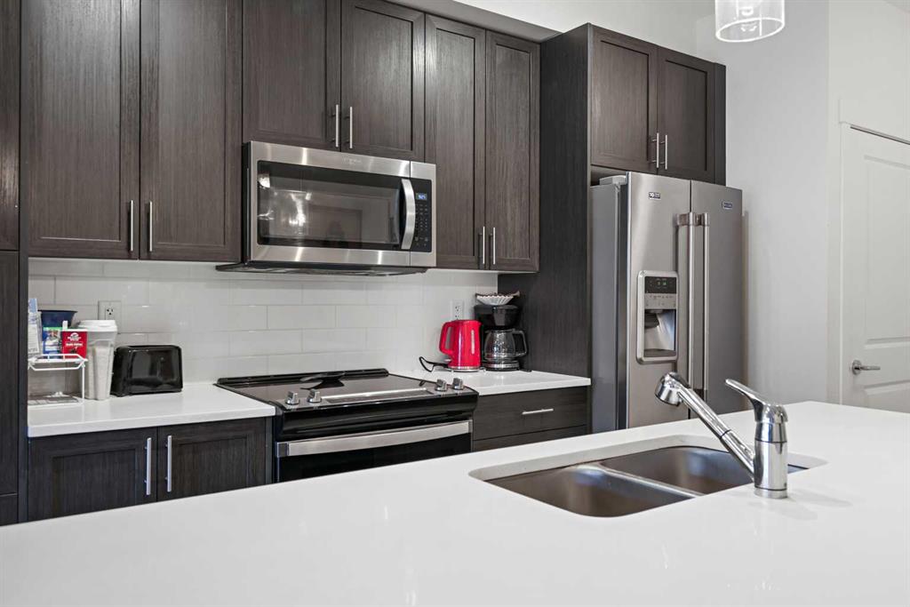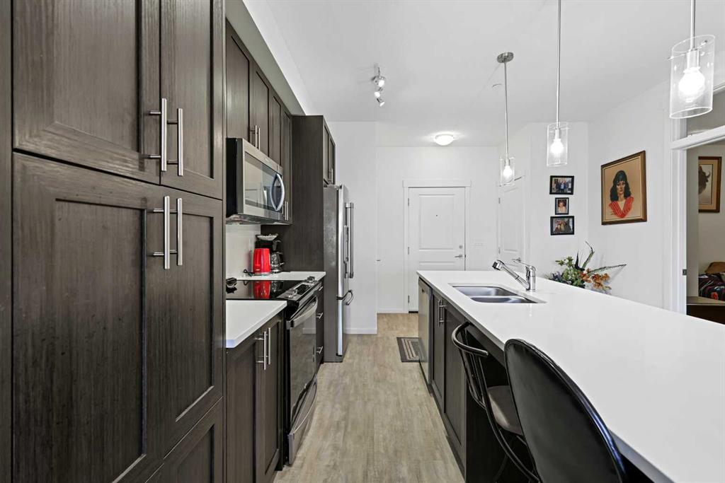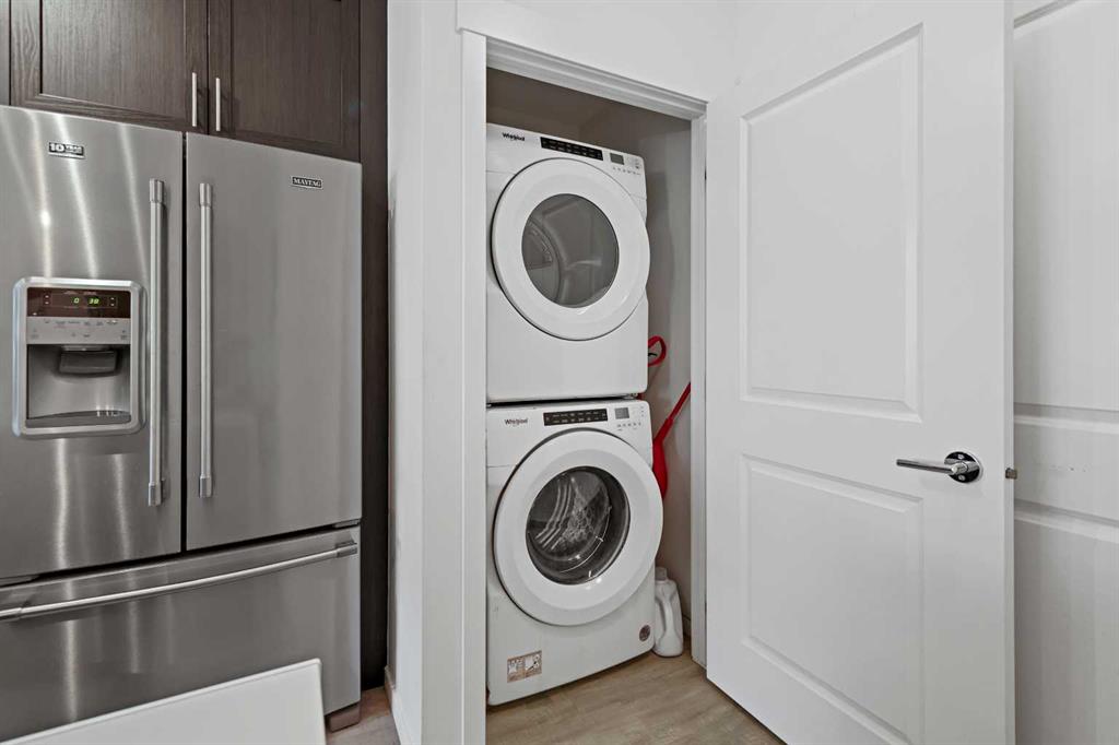 Welcome to this beautifully upgraded 2-bedroom, 1-bathroom condo in the vibrant community of Legacy! offering the perfect blend of modern design and everyday comfort. This home is steps away from parks, schools, shopping, and a bunch more amenities around. Inside, this open-concept layout showcases beautiful vinyl plank flooring, The kitchen is a chef’s dream, featuring extended counters for added seating/dining, upgraded full-height cabinetry for exceptional storage, and massive countertops perfect for entertaining guests. The bathroom is a retreat, complete with a double vanity and elegant finishes. Both bedrooms are very well sized and provide a cozy carpeting, while the primary bedroom includes a large window and custom-built closet organizers to maximize functionality. Step out onto your private balcony, where there is no lack of sunlight, creating a warm and inviting feeling. Equipped with a gas hookup, this outdoor space is ideal for summer barbecues, retreat indoors to the cool comfort of your wall-mounted air conditioning unit. Additional features include a full-sized washer and dryer, built-in closet storage, and pet-friendly policies, making this home as practical as it is inviting. Don’t miss the chance to make this beautiful condo your new home! Book your showing today and experience all that Legacy has to offer! Call your favourite realtor today and book a showing!