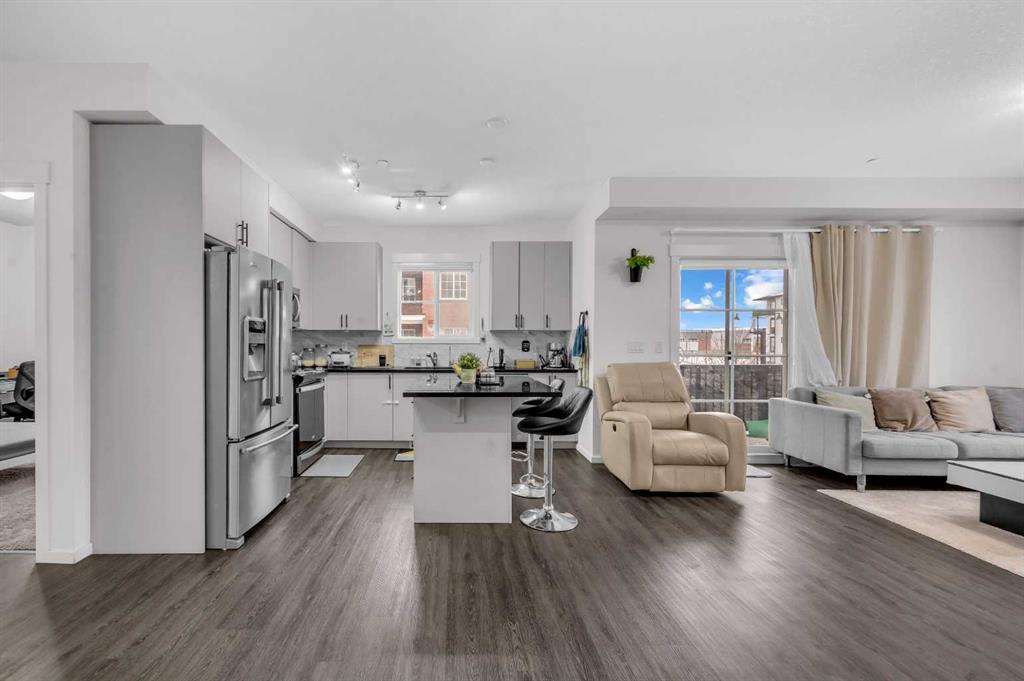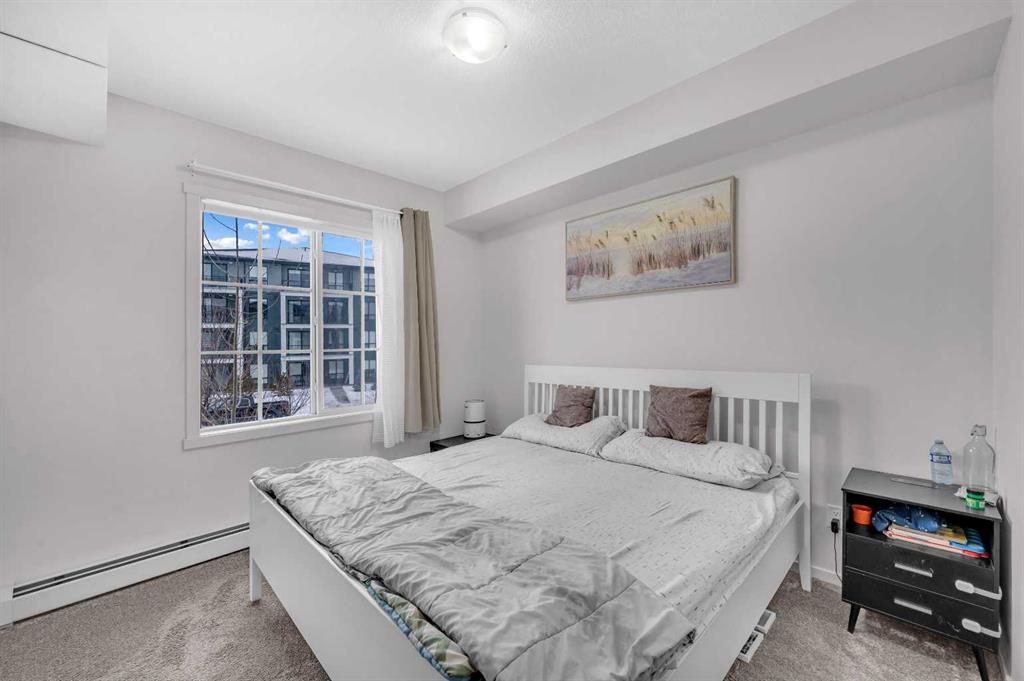 CORNER UNIT | UNDERGROUND PARKING| Welcome to a home where modern luxury meets everyday comfort in a truly unbeatable location. This exceptional 2 bedroom, 2 bathroom corner unit is bathed in natural light, offering a bright and airy atmosphere from the moment you step inside. Designed for both entertainment and peaceful living, the open concept layout is enhanced by top tier builder upgrades. The chef-inspired kitchen is a masterpiece, featuring sleek quartz countertops, a central island for prep, and upgraded stainless steel appliances. It flows seamlessly into the living area, where expansive south facing patio doors open to a sun-drenched balcony your private oasis for morning coffee or evening relaxation. The thoughtful floorplan ensures privacy, with bedrooms strategically separated. The primary suite is a true retreat, boasting an upgraded built in walk through closet that leads to a spa like 3 piece ensuite with quartz counters and a walk in shower. The second bedroom is generously sized and versatile. Added conveniences include in-suite laundry, a storage locker, and a titled underground parking stall steps from the elevator. Enjoy the ultimate in convenience with the Township Shopping Centre just a short stroll away. This move in ready home perfectly blends style, function, and location and is waiting for you to call it HOME!