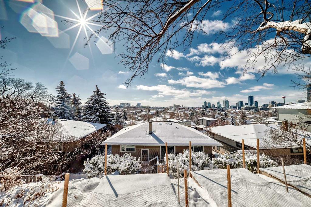 ATTENTION HOME BUYERS & INVESTORS! An incredibly RARE PRIME FUTURE DEVELOPMENT OPPORTUNITY with an unbeatable location! Massive SOUTH-EAST facing lot (723 SQ.M – 60 FT frontage & 128 FT avg depth) with unobstructed panoramic views of the downtown Calgary skyline & Bow River valley! This property has been well cared for with many years left to enjoy. It also has immense potential and is perfect for building your luxury dream home with stunning picturesque views. One of the best lots on the block, ideally located on a quiet street, fronting on to a boulevard green space and backing on to the Bridgeland escarpment. This Renfrew home borders Bridgeland and is only a 10 min walk to 1st Avenue shops & amenities plus a 20 min walk downtown. As an exceptional hillside front walk-out bungalow, it has great short term potential as a holding or income property with an illegal suited walk-out basement complete with private entrance. The main floor is 1131 sq ft and offers 3 bedrooms plus a 4-pce bathroom with brand new flooring and great vintage accents. The updated kitchen has maple cabinetry, granite counters, updated tile flooring and lighting, and stainless steel appliances. The bright living room/dining room combo has spectacular views of the city! Downstairs, the illegal one bedroom suite has a newly renovated 4-pce bathroom and deep windows bringing in lots of natural light. The single attached garage is accessible from the shared laundry room that has a front load washer & dryer. Upgrades include new triple pane windows in 2015, new high efficiency furnace in 2016, new roof and gutters in 2012, new backyard deck and a newer retaining wall near the hot tub. The property is also roughed-in for 220V wiring for a hot tub. The gorgeous back yard has views that keep getting better the higher you go plus mature trees and perennials along the way. Soak in the morning sun on the covered front patio or cozy up with sunset views of the city. The tiered yard offers garden beds and a fire pit with some of the best views on the property – a taste of what a 2+ storey home could offer. All this in a highly desirable inner-city walkable community! Don’t miss out – come see it today!