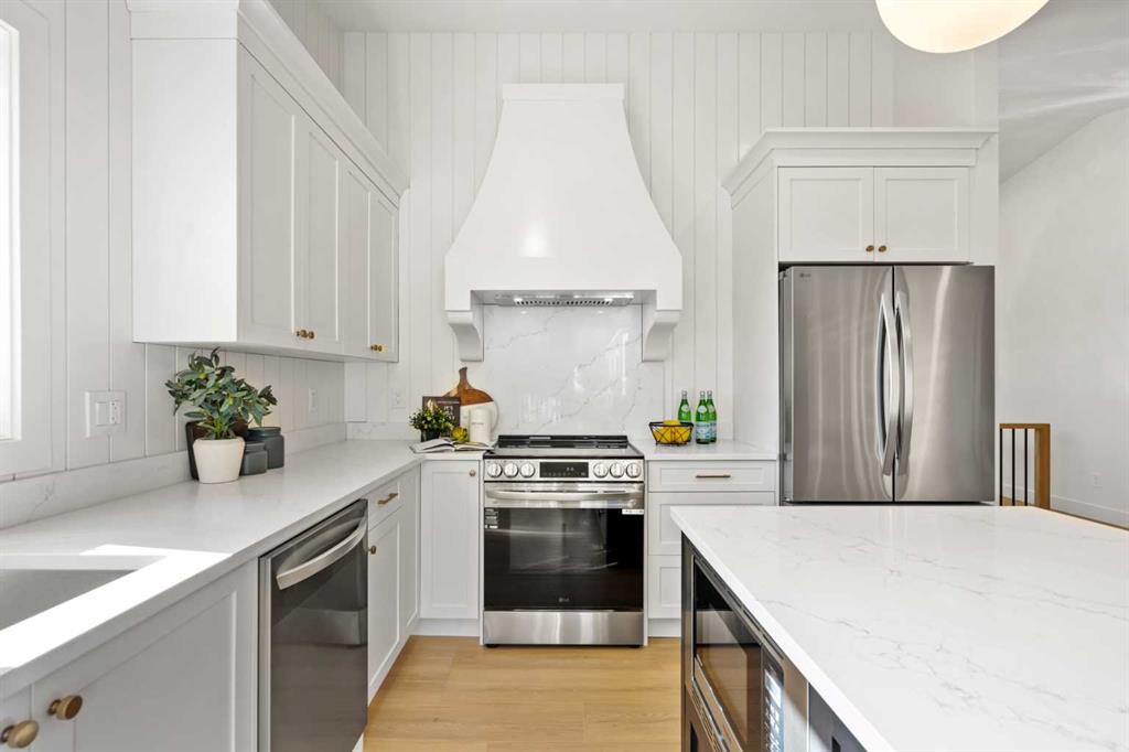 Welcome to 824 Sierra Morena Place SW, a fresh, bright, and inviting home that perfectly blends modern elegance with warmth and comfort. Renovated from top to bottom, this stunning property offers over 3,300 sq. ft. of finished living space in one of Signal Hill’s most desirable, family-friendly cul-de-sacs — backing directly onto a peaceful green space and walking paths. Step inside to find custom lighting and vaulted ceilings that flood the home with natural light. The brand-new kitchen features a large quartz island, new stainless-steel appliances (including refrigerator, microwave, oven, stove, hood fan, dishwasher, and wine fridge), and soft-close cabinetry with upgraded hardware. The front living room, cozy family room, and sunroom provide plenty of space for family and entertaining alike. The primary suite is a true retreat with a feature ceiling, custom finishing accents, and a 5-piece ensuite boasting new fixtures, sinks, and quartz counters. The ensuite connects conveniently to a walk-in closet featuring private laundry, adding both comfort and function. A second bedroom and 4-piece bathroom allow for multi-purpose use. Downstairs, discover a spacious recreation and games area with a new wet bar, perfect for entertaining. The two newly developed bedrooms feature walk-in closets and enlarged windows for light and comfort. The 3-piece hall bath can function as an ensuite for one of the bedrooms. Additional lower-level highlights include laundry, storage room and access to a covered patio/workspace beneath the east-facing balcony — ideal for year-round projects or relaxation. Outside, enjoy a low-maintenance front yard, fresh sod in the backyard, and a mix of fruit trees, vegetable gardens, and lawn — perfect for outdoor living. The east-facing deck and sunroom offer the perfect space for morning coffee or three-season lounging. This home also features new PEX plumbing lines, upgraded electrical, some new windows, an insulated double attached garage, and thoughtful custom touches like built-in storage and mudroom bench seating. Unbeatable location: walk to nearby play parks, green spaces, transit on Sierra Morena Blvd, and shopping at Sierra Square, Signal Hill Centre, and Westhills Towne Centre. Quick access to Richmond Road, 68th Street, Stoney Trail, and Glenmore Trail makes commuting easy. Whether you’re looking for a family home or an executive retreat for entertaining, this home delivers modern design, thoughtful upgrades, and timeless comfort — all in a serene Signal Hill setting.