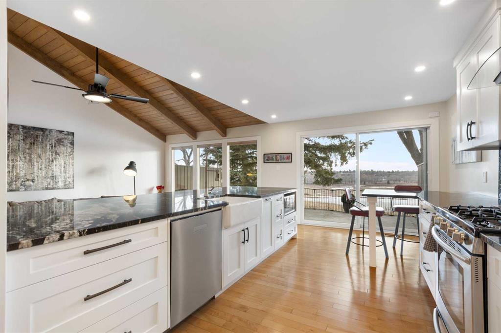 You will find exceptional value in this renovated, one and half storey, bungalow with loft home in the sought-after neighbourhood of Midnapore! Not only do you have access to Lake Midnapore and its amenities, but you also have a one-of-a-kind opportunity to live on a ridge, backing directly onto Fish Creek Provincial Park, with spectacular views, all at an affordable price. This 2 bedroom, 3 bathroom home features over 1,850 sqft and is well cared for with thought put into every upgrade and detail. To enter the home, you will first pass by the double attached garage into a small courtyard space. As you enter the front door, you will immediately notice maple hardwood flooring throughout. As you head into the home, you will enter a beautiful open-concept kitchen with high end granite countertops, a large 12-foot island with custom built shelving, upgraded stainless steel appliances, and pantry. The family room features vaulted wood slat ceiling, multiple windows facing Fish Creek and allowing for natural light, and a gas fireplace – all of which make it easy to entertain and gather with family and friends. Head down the hallway, where you will find a large primary bedroom with double closets featuring custom shelving and a renovated, 5-piece bathroom featuring a double vanity with quartz countertops, and heated tile flooring. Finishing off the main floor is a second bedroom, 3-piece main bathroom and dining room. Upstairs, an impressive loft with vaulted ceilings features a bonus room and additional office space with built in desk/cabinets. Heading downstairs, the 1,300 sqft, partially finished basement includes a 3-piece bathroom, a vearsatile living space that can be converted into a large recreation area, and over 500 sqft of utility and storage area. Finally, head onto your back deck and enjoy the remarkable views and access to Fish Creek Provincial Park, an absolute luxury that you will enjoy all year long! Additional upgrades to the home include a new furnace (~2024), hot water tank (~2025), dishwasher (~2022), carpet (~2021), and almost all new windows (~2021). Do not miss out on this opportunity!