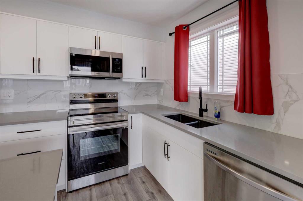 HOME SWEET HOME! This is your amazing and rare opportunity to own a magnificently modern, stunning END UNIT, CORNER TOWNHOUSE WITH NO CONDO FEE”S nestled in the heart of the wonderful community of Windsong in Airdrie. This home was custom-bult in 2023 offering 3 bedrooms, 2.5 bathrooms and 1,426 SQFT of move-in ready living space. Heading inside you will fall in love with the luxury vinyl plank flooring and upgraded finishing’s and décor. The main floor offers a bright foyer and utility room with tons of storage space. The 2nd floor offers a spectacular open concept floor plan with a gourmet chef’s kitchen with elegant quartz countertops, quartz island with an eating bar, a pantry, and premium stainless-steel appliances. Completing the floor is 2 piece vanity bathroom, dining area with access to the spacious balcony and the large living room flooded in all the natural sunlight you could hope for. Upstairs features 2 generous sized bedrooms, convenient laundry room, a fantastic, upgraded 4 piece bathroom and your private oasis with a huge primary bedroom with a walk-in closet and 4 piece ensuite bathroom. Relax and unwind on the Southwest facing balcony on sunny days and bask in your breathtaking views. Another highlight feature is the single attached garage. This property is ideal for pet owners as well as there is a front yard space for your convenience. This unrivalled location is steps from a playground, pathways and a pond, shopping, restaurants, schools, public transportation, parks, easy access to Highway 2 and a quick drive to Calgary. Don’t miss out on this exciting opportunity for investors and home buyers alike. This home is a MUST VIEW! Book your private viewing today!