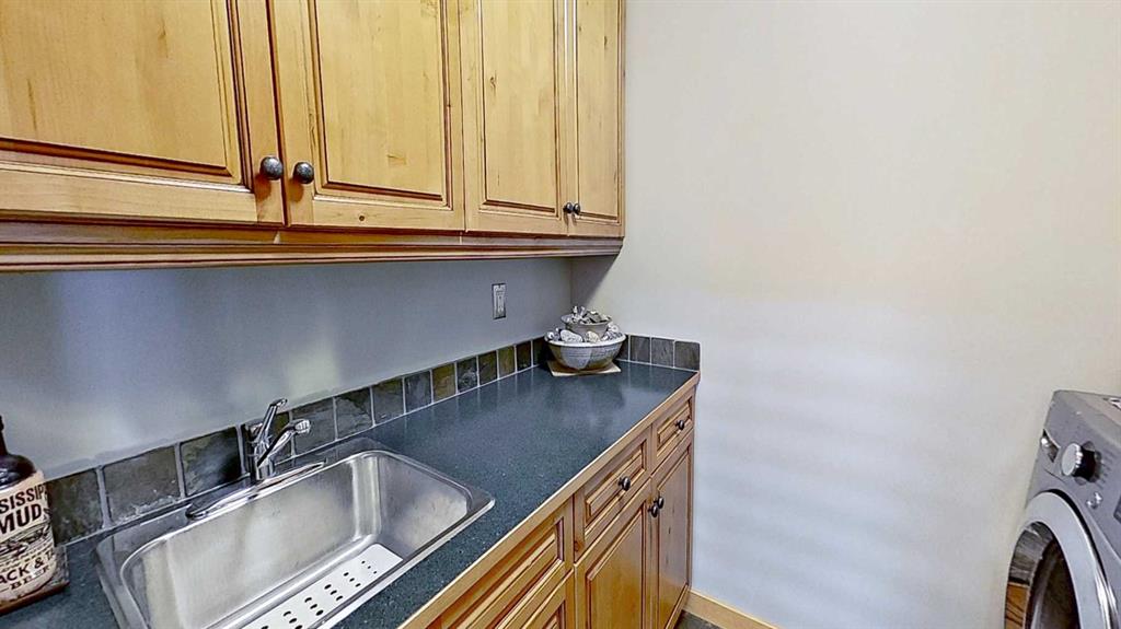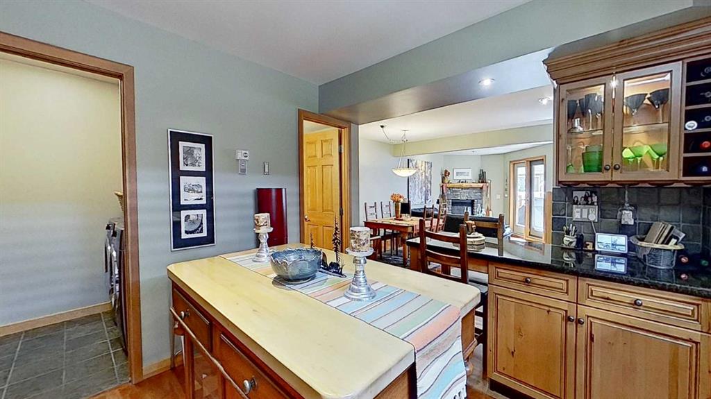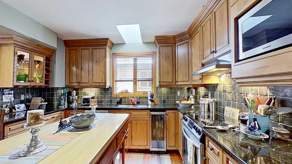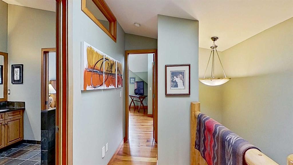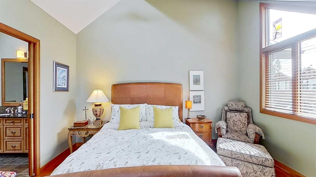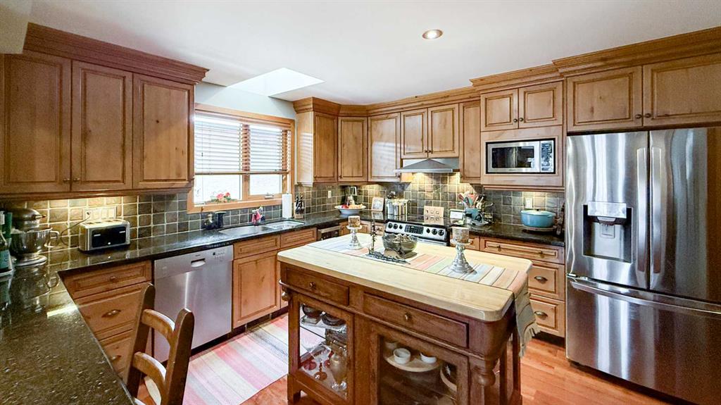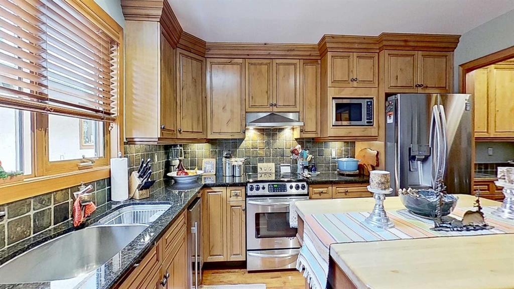 Nestled in a quiet nook of one of Canmore’s most desirable and established neighbourhoods, this beautifully crafted, original-owner home offers refined mountain living just steps from the Bow River. Located in sought-after South Canmore, this meticulously maintained 3-bedroom, 2.5-bathroom walk-up quadplex spans approximately 1,866 sq ft across three levels, combining timeless craftsmanship with classic mountain design. The south-west exposure fills the home with natural light throughout the day, while expansive windows and skylights frame stunning views of the Three Sisters, Ha Ling Peak, and Mount Rundle. Inside, high-end finishes create a warm and elegant atmosphere. The home features solid alder Kitchen Craft cabinetry with undermount lighting, granite countertops, Kohler fixtures, cherry hardwood flooring, slate tile, and custom wood blinds, complemented by beautiful knotty pine interior stair rails and cedar exterior railings. Vaulted ceilings on the upper level enhance the sense of space and light. The thoughtfully designed kitchen is equipped with premium appliances including an Electrolux Pro-Series stove, Bosch dishwasher, newer LG refrigerator, Panasonic microwave, and built-in Cavavin beverage centre, making it ideal for both daily living and entertaining. Comfort and functionality are found throughout the home with radiant in-floor heating on the ground level and in the spacious master ensuite, a cozy gas fireplace, dedicated pantry and laundry with newer LG washer and dryer, and a luxurious master bathroom featuring a corner jacuzzi tub and steam shower. On the second level, a south-west facing covered patio provides the perfect place to sit and enjoy the sun and mountain views, complete with a natural gas BBQ outlet. The surrounding low-maintenance landscaping features rundle rock, mature trees, and established shrubs, creating a beautiful setting without the upkeep. Additional highlights include a fully enclosed single-car garage with internal access, exposed aggregate driveway parking for an additional vehicle, central vacuum, and a recently repainted interior. Positioned just seconds from the Bow River pathway system and within easy reach of schools, shops, and local amenities, this home offers the rare combination of quiet residential living with immediate access to Canmore’s world-class outdoor lifestyle. With low condo fees of $350/month and pride of ownership evident throughout, this move-in-ready property presents an exceptional opportunity to own in one of Canmore’s most established communities.
