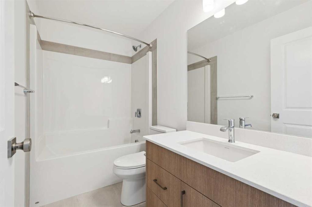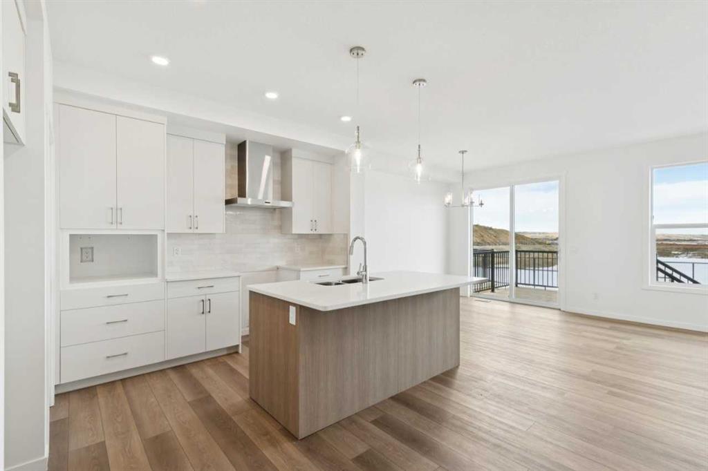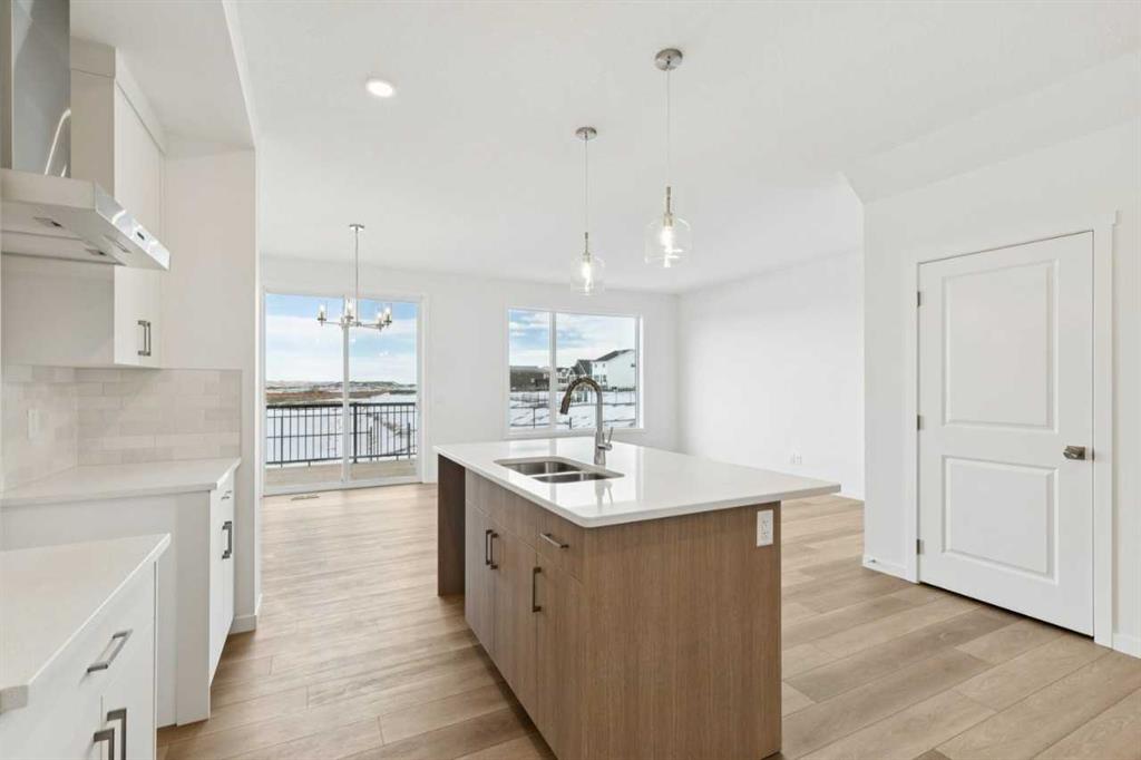 Welcome to the Pace II-d by Daytona Homes in Southbow Landing of Cochrane. A rare home backing onto future greenspace at this price point, this beautifully designed 1,645 sq. ft. two-storey home offers 3 bedrooms, 2.5 bathrooms, and a double front attached garage. The open-concept main floor is bright and inviting, ideal for everyday living and entertaining. The kitchen flows seamlessly into the dining and great room, creating a central gathering space for family and friends. Large rear windows and patio door onto your completed deck help you enjoy the future greenspace views and natural light. Upstairs, you’ll find three well-appointed bedrooms, including a spacious primary retreat complete with a private ensuite and walk-in closet. Two additional bedrooms a full bathroom, a laundry room, and a loft add flexibility and convenience for family, guests or home office. Photos are representative.