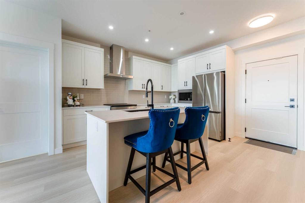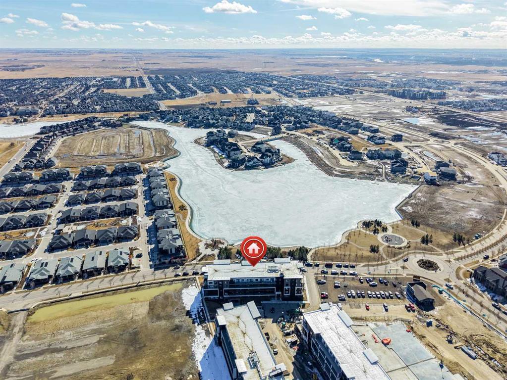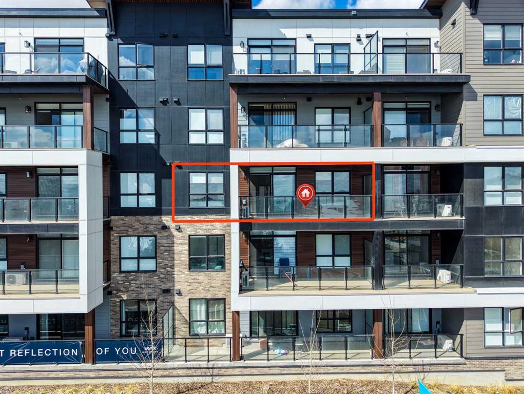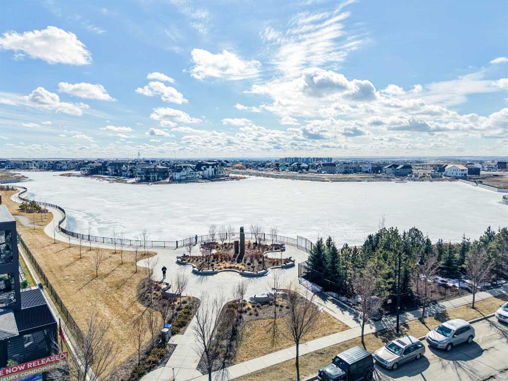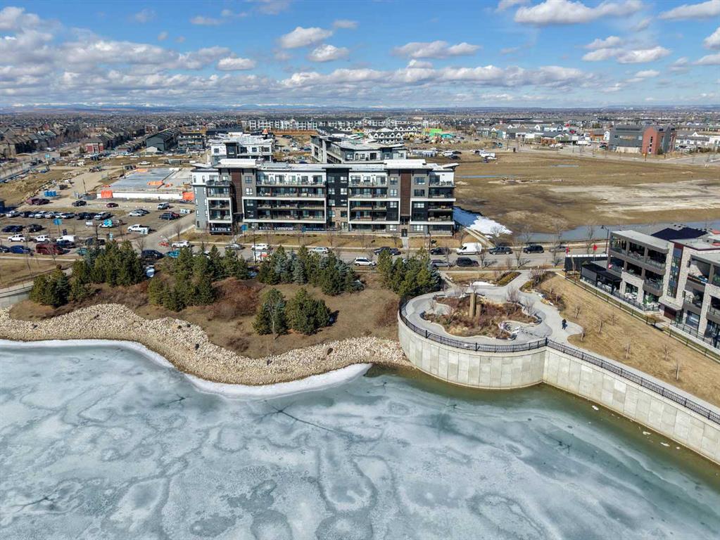 WELCOME TO THIS LAKE FACING UNIT, BEAUTIFULLY UPGRADED AND THOUGHTFULLY DESIGNED 2-BEDROOM, 2-BATHROOM CONDO UNIT LOCATED IN THE HIGHLY SOUGHT-AFTER LAKE COMMUNITY OF MAHOGANY! Offering over 766 sq ft of living space with $40,000+ WORTH OF PREMIUM UPGRADES, this stunning unit combines MODERN FINISHES, functional layout, and exceptional comfort—perfect for first-time buyers, downsizers, or investors. Step inside to discover a bright and OPEN CONCEPT FLOOR PLAN featuring a spacious living room that seamlessly flows into the dining area and contemporary kitchen—ideal for both everyday living and entertaining. The kitchen is a true highlight, showcasing EXTENSIVE UPGRADES, including a sleek INDUCTION RANGE, UPGRADED STAINLESS STEEL APPLIANCES, extended cabinetry, and a beautifully designed island with added storage and overhang for casual seating. The thoughtful kitchen layout maximizes both style and functionality. The primary bedroom offers a comfortable retreat with VIEWS OF THE LAKE FROM ITS WINDOW, a walk-in closet and a private 4-ENSUITE WITH DOUBLE VANITY, featuring UPGRADED FINISHES and a FULLY-TILED SHOWER for a spa-like experience. The second bedroom, ALSO WITH VIEWS OF THE MAHOGANY LAKE FROM ITS WINDOW, is well-sized and conveniently located near the 3-piece main bathroom, also enhanced with modern fixtures and a fully tiled shower. Additional interior features include in-suite laundry, upgraded cabinetry details, modern hardware, and carefully selected finishes throughout that elevate the overall aesthetic of the home. Enjoy your morning coffee or unwind in the evening on the PRIVATE BALCONY OVERLOOKING THE LAKE, providing an ideal outdoor space to relax. This unit also benefits from approximately $44,000 in upgrades such as UPGRADED SAMSUNG KITCHEN APPLIANCES (induction range & refrigerator), extended kitchen island and cabinetry enhancements, custom pantry configuration, fully tiled showers in both bathrooms with frameless glass doors, upgraded plumbing fixtures and comfort-height toilets, under-cabinet lighting and modern matte black hardware and enhanced interior finishing details throughout. Located in the AWARD-WINNING COMMUNITY OF MAHOGANY, residents enjoy access to CALGARY’S LARGEST FRESHWATER LAKE, beaches, walking paths, parks, and an abundance of nearby amenities including shopping, restaurants, and schools. This is a rare opportunity to own a highly upgraded, move-in-ready condo in one of Calgary’s premier lake communities—don’t miss it!