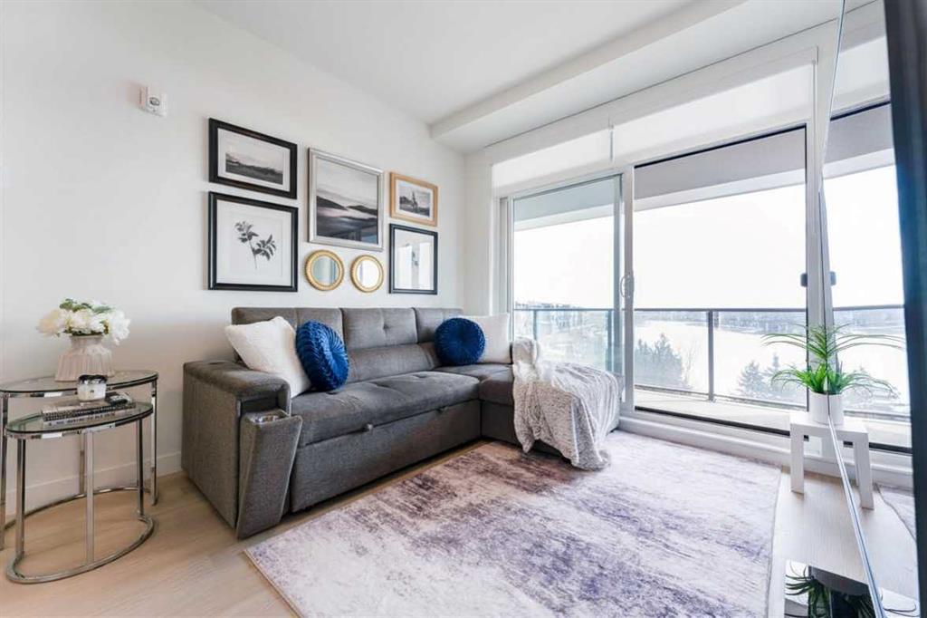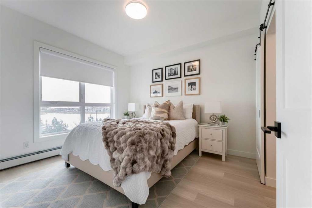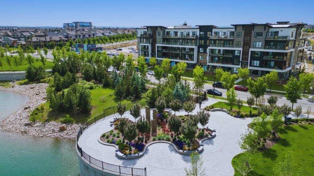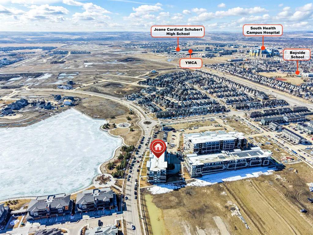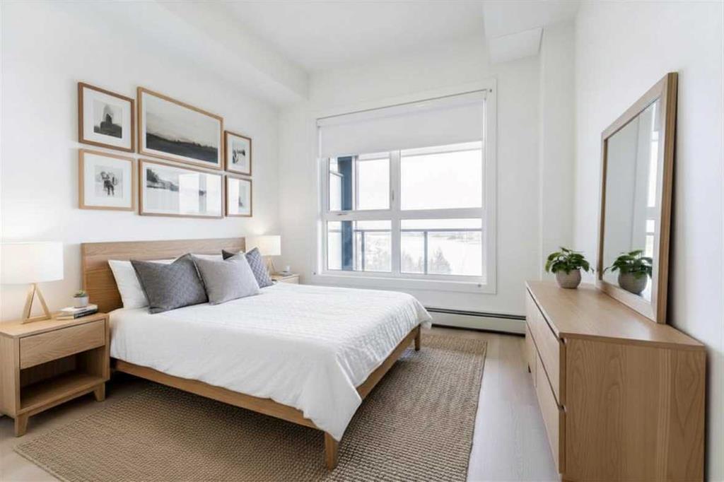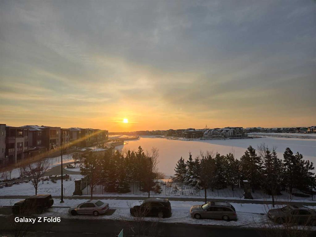 WELCOME TO THIS LAKE FACING UNIT, BEAUTIFULLY UPGRADED AND THOUGHTFULLY DESIGNED 2-BEDROOM, 2-BATHROOM CONDO UNIT LOCATED IN THE HIGHLY SOUGHT-AFTER LAKE COMMUNITY OF MAHOGANY! Offering over 766 sq ft of living space with $40,000+ WORTH OF PREMIUM UPGRADES, this stunning unit combines MODERN FINISHES, functional layout, and exceptional comfort—perfect for first-time buyers, downsizers, or investors. Step inside to discover a bright and OPEN CONCEPT FLOOR PLAN featuring a spacious living room that seamlessly flows into the dining area and contemporary kitchen—ideal for both everyday living and entertaining. The kitchen is a true highlight, showcasing EXTENSIVE UPGRADES, including a sleek INDUCTION RANGE, UPGRADED STAINLESS STEEL APPLIANCES, extended cabinetry, and a beautifully designed island with added storage and overhang for casual seating. The thoughtful kitchen layout maximizes both style and functionality. The primary bedroom offers a comfortable retreat with VIEWS OF THE LAKE FROM ITS WINDOW, a walk-in closet and a private 4-ENSUITE WITH DOUBLE VANITY, featuring UPGRADED FINISHES and a FULLY-TILED SHOWER for a spa-like experience. The second bedroom, ALSO WITH VIEWS OF THE MAHOGANY LAKE FROM ITS WINDOW, is well-sized and conveniently located near the 3-piece main bathroom, also enhanced with modern fixtures and a fully tiled shower. Additional interior features include in-suite laundry, upgraded cabinetry details, modern hardware, and carefully selected finishes throughout that elevate the overall aesthetic of the home. Enjoy your morning coffee or unwind in the evening on the PRIVATE BALCONY OVERLOOKING THE LAKE, providing an ideal outdoor space to relax. This unit also benefits from approximately $44,000 in upgrades such as UPGRADED SAMSUNG KITCHEN APPLIANCES (induction range & refrigerator), extended kitchen island and cabinetry enhancements, custom pantry configuration, fully tiled showers in both bathrooms with frameless glass doors, upgraded plumbing fixtures and comfort-height toilets, under-cabinet lighting and modern matte black hardware and enhanced interior finishing details throughout. Located in the AWARD-WINNING COMMUNITY OF MAHOGANY, residents enjoy access to CALGARY’S LARGEST FRESHWATER LAKE, beaches, walking paths, parks, and an abundance of nearby amenities including shopping, restaurants, and schools. This is a rare opportunity to own a highly upgraded, move-in-ready condo in one of Calgary’s premier lake communities—don’t miss it!