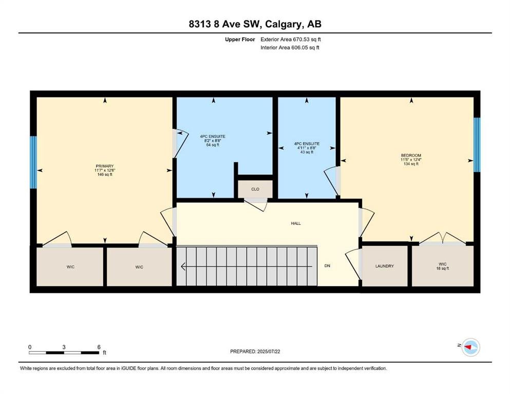 Upstairs, you’ll find two generously sized bedrooms. The secondary bedroom includes its own 3-piece ensuite and is ideal as a guest room, home office, or space for family. The primary bedroom offers a peaceful retreat, complete with two large windows, a spacious layout, and a 4-piece ensuite bathroom. Additional storage is thoughtfully integrated to keep your living space organized and functional.