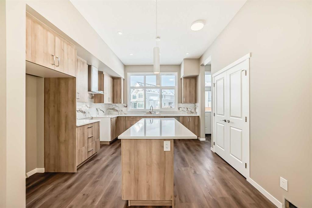 Welcome to this brand-new “Joni” floor plan—an intelligently designed semi-detached home offering stylish finishes, thoughtful functionality, and an exceptional location in one of Calgary’s most sought-after lake communities. Perfectly positioned directly across from the historic Ollerenshaw Heritage Ranch, this home offers a unique setting that blends Mahogany’s modern lifestyle with a sense of character, open space, and community charm that is truly hard to replicate. Inside, the main floor immediately impresses with soaring 10’ ceilings, wide-plank luxury vinyl flooring, and a bright, open feel that makes the home feel both elevated and inviting. At the front of the home, a versatile flex room provides the perfect space for a home office, reading nook, kids’ playroom, or creative studio—giving you the flexibility to live the way that suits you best. As you move toward the rear, the layout opens into a beautifully connected living, dining, and kitchen area designed for both everyday comfort and easy entertaining. The spacious living room flows seamlessly into the oversized dining area, creating the ideal backdrop for family dinners, weekend brunches, or evenings spent hosting friends. The kitchen is a standout feature, showcasing raised cabinetry, quartz countertops, stainless steel appliances, a stand-alone chimney hood fan, modern tile backsplash, and a large centre island that anchors the space beautifully. Upstairs, a central bonus room creates a second living area that’s perfect for movie nights, a homework zone, or a quiet place to unwind. The primary bedroom feels like a true retreat, complete with a generous walk-in closet and a spa-inspired 4-piece ensuite designed to bring a little luxury into your daily routine. Two additional bedrooms, a full 4-piece bathroom, and a conveniently located upper-floor laundry room complete the level with practicality and ease. A secondary entrance adds valuable flexibility for future possibilities, whether for extended family, guests, or additional living space (a secondary suite would be subject to approval and permitting by the city/municipality). Beyond the home itself, the location is a major highlight. Being directly across from the Ollerenshaw Heritage Ranch adds a special layer to everyday life, offering a distinctive community feature right outside your door. Set within the award-winning community of Mahogany, residents enjoy access to Calgary’s largest freshwater lake, two sandy beaches, the resident-exclusive Beach Club, skating rinks, sport courts, fishing docks, and over 22 km of scenic pathways woven through beautiful wetlands. Just minutes from the South Health Campus, Seton Urban District, and Mahogany’s growing collection of shops, restaurants, and everyday amenities, this is a community built around connection, convenience, and year-round lifestyle. From summer days on the lake to peaceful walks through the neighbourhood, this is more than a home—it’s a place to fully enjoy where you live.