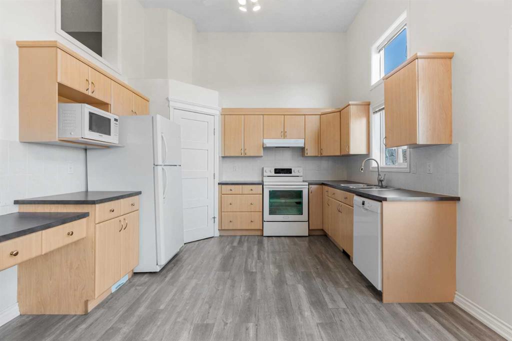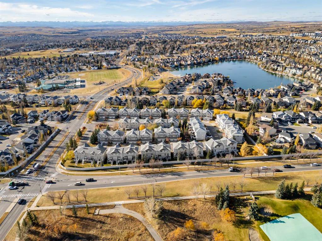 Welcome to The Turnbury in Crystal Shores, a sought-after pet-friendly complex (max 3 pets with board approval!) steps from the residents-only beach at Crystal Shores Lake and across from Crystal Ridge Golf Course. This bright end unit backs directly onto the course with no neighbours behind and lovely views from the kitchen, dining area, deck and upper rooms. The inviting foyer leads to a sunlit kitchen and dining space with vaulted ceilings, a corner pantry and direct access to the deck with gas hook-up. A few steps up, the living room features a large window and a cosy corner gas fireplace, ideal for relaxing or entertaining. The flexible loft on the upper level is perfect for a home office, reading nook or even a bedroom if needed. On the same level, you will find two generous bedrooms. The master bedroom has stunning views of the pond and the golf course. The lower level is an undeveloped basement, great for storage today and ready for your creativity tomorrow. Parking is easy with an attached single garage and driveway. Walk to the lake and beach club, playgrounds and pathways. Minutes to schools, shopping, restaurants, recreation and all the amenities of vibrant Okotoks. This is a perfect family home or an investment property. School boundaries: K to 6 attend Dr. Morris Gibson, grades 7 to 9 attend École Okotoks Junior High, and grades 10 to 12 attend École Secondaire Foothills Composite High School or Alberta High School of Fine Arts. Pet policy summary: household pets only, subject to Board approval. No livestock, snakes, reptiles, arachnids or fowl. Maximum of 3 pets per unit. Book a showing today and view the 3D iGuide virtual tour!