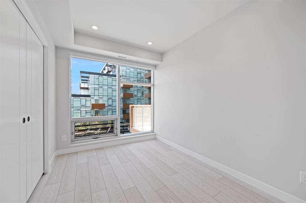 This thoughtfully designed 1-bedroom, 1-bathroom home offers a smart layout that blends style with functionality. The sleek kitchen boasts quartz countertops, full-height cabinetry, and stainless steel appliances, flowing seamlessly into a bright open-concept living space. A standout feature of this unit is its serene view of the landscaped inner terrace—a rare urban retreat that brings natural greenery and calm right to your window. The bedroom is bright and welcoming, while the bathroom features clean lines and high-quality finishes for an elevated everyday experience.