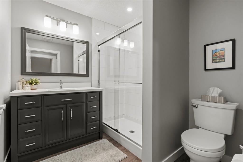 ** OPEN HOUSE SUN FEB 1st 1-4p.m** Located in the highly sought-after community of Mountview in Okotoks, where opportunities are rare due to limited supply, this beautifully built Sterling Home offers over 3,000 square feet of thoughtfully designed living space and is fully air conditioned for year-round comfort. The exterior makes a strong first impression with durable hardiboard front siding and a tasteful, timeless design. Inside, the home offers 2,268 square feet above grade with a fully finished basement, four bedrooms, a main floor office, and three and a half bathrooms, making it ideal for growing families or those who need flexible space. The main floor features gorgeous hardwood flooring, quartz countertops throughout, and stainless steel appliances. The kitchen is anchored by a large sit-up island with an integrated sink and flows seamlessly into the dining area and living room, where a beautiful fireplace and custom mantle create a warm and inviting focal point. A walk-through pantry connects the kitchen to the back entrance, complete with built-in coat hooks for everyday convenience. One of the standout features of this home is the heated screened room with retractable screens, allowing you to enjoy the outdoors comfortably through all seasons. Upstairs, the primary bedroom is filled with natural light from a stunning window and features a tasteful feature wall. The ensuite includes dual sinks with a quartz vanity, a soaker tub, a separate shower, and a large walk-in closet. Down the hall are two additional bedrooms and a well-designed laundry room with its own sink and excellent storage. At the end of the hall, the south-facing bonus room is flooded with light thanks to its abundance of windows, creating a bright and versatile family space. The fully finished basement includes a massive bedroom, a large open play or recreation area, and a full bathroom with a tiled shower extending to the ceiling. The mechanical room is equally impressive, featuring a recently serviced hot water tank and furnace, freshly cleaned ductwork, a full water softening system, an HRV system, and yes, air conditioning. Rounding out this exceptional home is the garage, which includes custom storage solutions and an epoxy-coated floor, creating a clean, functional, and truly standout space. Homes like this in Mountview do not come along often. This is a rare opportunity to secure a move-in-ready home in one of Okotoks’ most desirable communities.