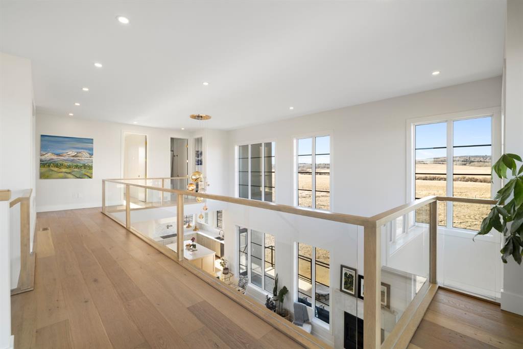 Experience the perfect balance of peaceful country living and city convenience with this stunning 2024-built home, ideally located just minutes outside Calgary’s city limits off 22X on the way to Priddis. Set on 2 acres in the rolling landscape of Foothills County, this property offers 3,804 sq ft of total developed living space across three levels, including a fully developed walkout basement suite, making it an exceptional opportunity for those seeking flexibility, multi-generational living, or rental potential. Designed to capture breathtaking 360-degree views from every room, the home showcases sweeping vistas of the surrounding hills and distant mountains, creating a true retreat-like setting.