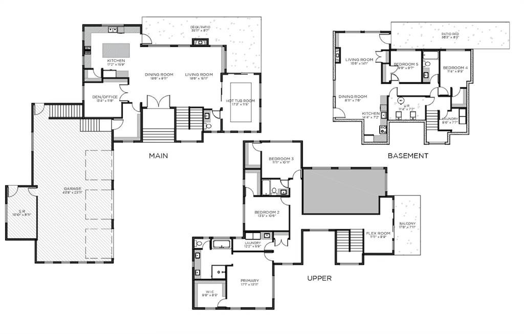 Inside, the main living area is anchored by soaring 20-foot ceilings that create a grand and open atmosphere, complemented by expansive windows that flood the space with natural light. The open-concept layout seamlessly connects the living and dining areas, making it ideal for both everyday living and entertaining. The kitchen is beautifully appointed with quartz countertops, stainless steel appliances, an induction cooktop, pot filler, striking backsplash, and a statement hood fan, all centered around a large island. White oak hardwood flooring runs throughout the home, adding warmth and cohesion. The main level also features a dedicated office with custom built-ins, a spacious mudroom, and a remarkable pool room addition (not included in the total square footage) complete with a state-of-the-art swim spa that functions as a hot tub, resistance pool, and relaxation space, all surrounded by incredible views.