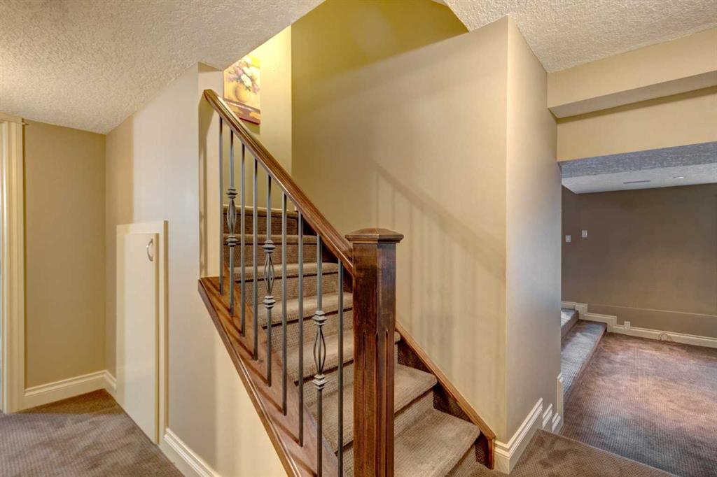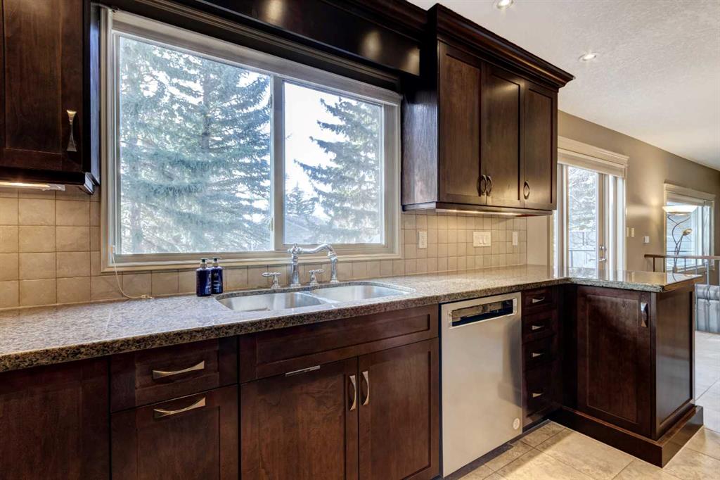 Welcome to this Fully RENOVATED Estate Home(by previous owner) with VAULTED HIGH ceiling, close to 3500 sqfeet living area and a WALKOUT Basement offers 4 bedrooms, 4 bathrooms, and a Private South-Facing backyard. Exceptional craftsmanship and thoughtful upgrades define this beautiful estate home, ideally situated in a quiet, park-like setting. Stunning curb appeal welcomes you with mature trees, lush landscaping, and a charming front patio enhanced with outdoor speakers creating an inviting first impression. Inside, soaring vaulted ceilings and rich hardwood flooring elevate the elegant formal living and dining areas. The renovated kitchen is both stylish and functional, featuring full-height cabinetry, granite countertops, undermount sink , Garburator and stainless steel appliances including NEW washer/dryer, NEW dishwasher, NEW microwave and cooktop(2024). The bright breakfast nook opens onto a spacious deck and overlooks the sunken family room, complete with custom built-ins, a dramatic stone fireplace, and integrated sound system. Upstairs, hardwood flooring continues through the hallway and versatile loft with built-in workspace. Three generously sized bedrooms include a luxurious primary retreat offering heated floors in both the bedroom and spa-inspired ensuite, a jetted jacuzzi tub, oversized glass shower, dual vanities, and a large walk-in closet. The additional bedrooms feature custom built-in desks and storage, sharing a well-appointed 5-piece bathroom. The fully finished walkout basement expands your living space with a fourth bedroom, full bathroom, spacious recreation area with a second fireplace, open games area, and a bar ideal for entertaining. A built-in sound system extends throughout the main floor, basement, backyard, and front patio for seamless indoor-outdoor enjoyment. This home is equipped with two furnaces, dual central air conditioning units, a central vacuum system, and quality finishes throughout for year-round comfort and efficiency. Step outside to the extremely private, south-facing backyard, fully fenced and surrounded by mature trees complete with a maintenance-free deck and large covered patio, perfect for relaxing or hosting gatherings. The backyard has a large Built in garden shed with sloped asphalt shingle roof to store and organize gardening tools and materials. oversized double attached garage, with plenty installed tool hangers and cabinet completes the package. Located just minutes from schools, shopping, restaurants, major roadways, and the expansive pathways of Nose Hill Park. Also steps to a large off-leash park and a short walk to John Laurie Park featuring tennis courts and seasonal outdoor skating. A rare opportunity to own a truly turnkey estate home offering luxury, privacy, and exceptional functionality.
