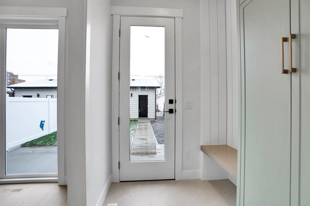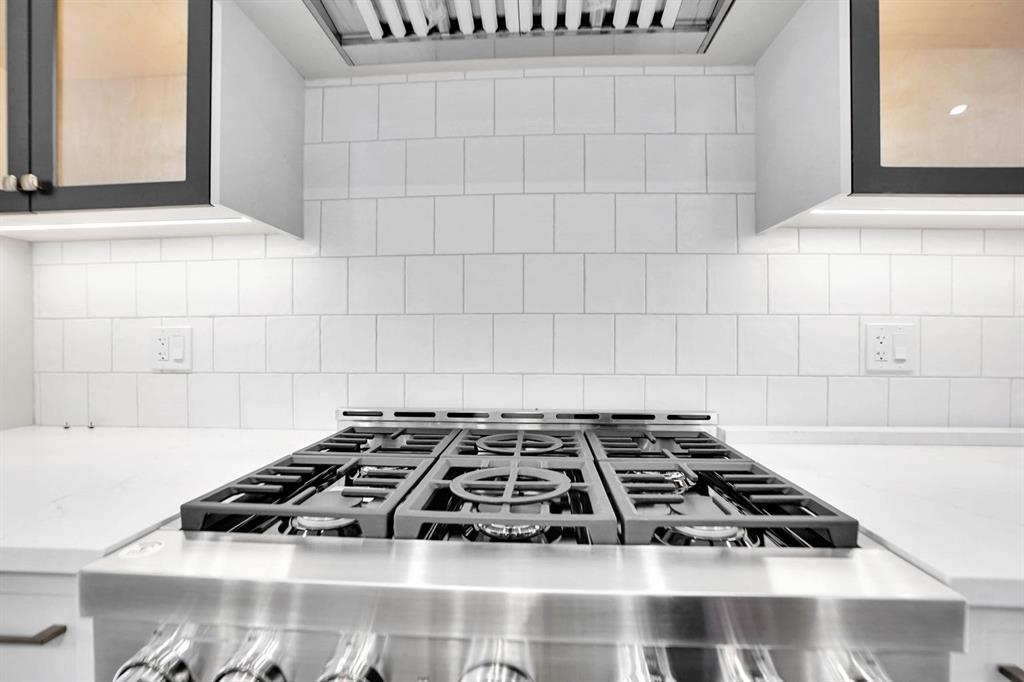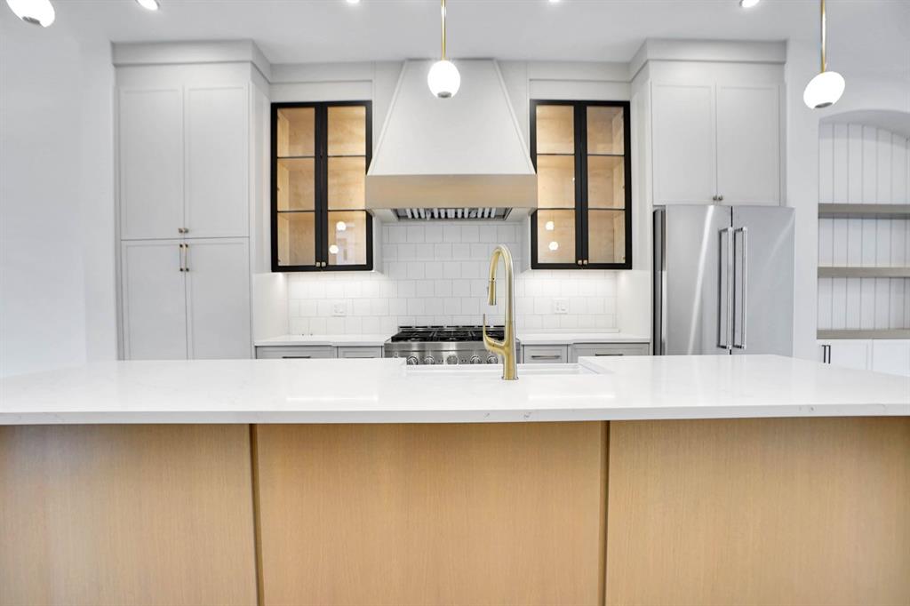 Enjoy a chef-inspired kitchen with quartz countertops, warm wood accents, premium stainless steel appliances, and a show-stopping waterfall island. The living room boasts a modern fireplace with custom built-ins and opens to a sunny south-facing backyard – perfect for entertaining.