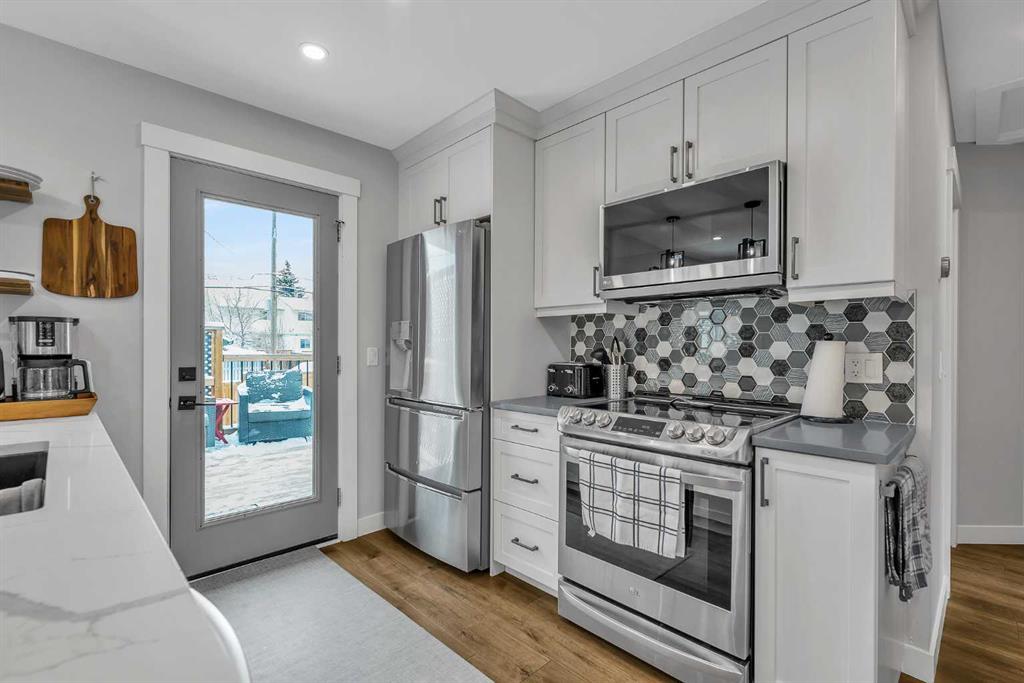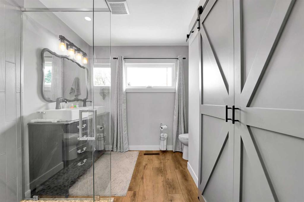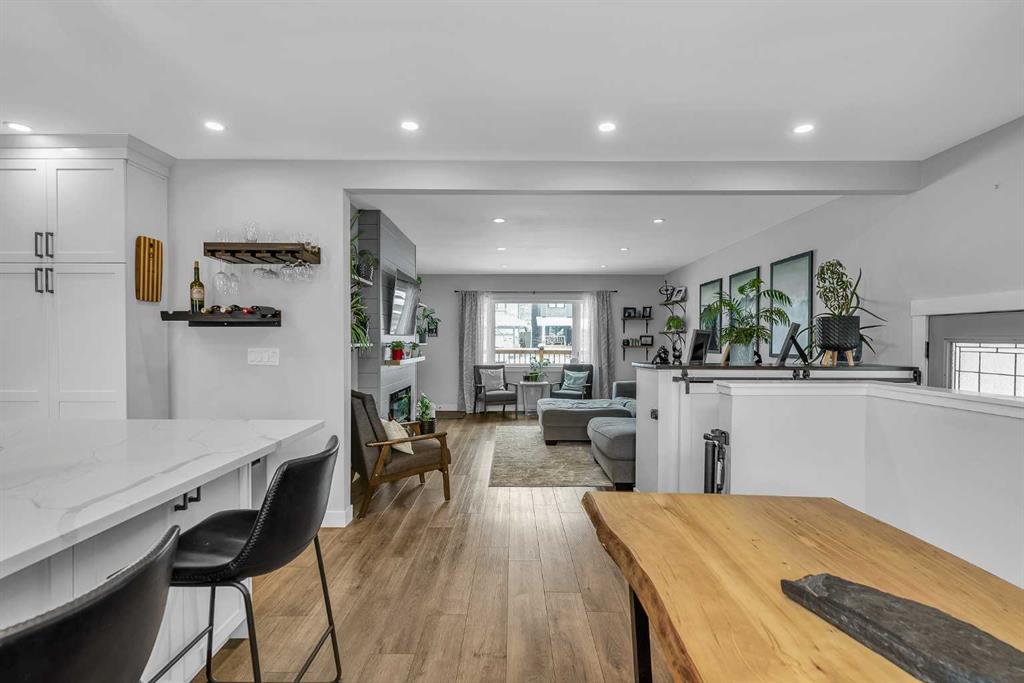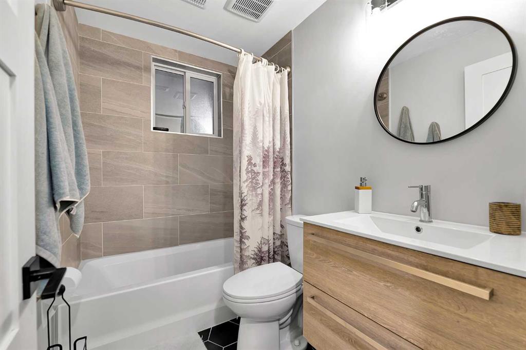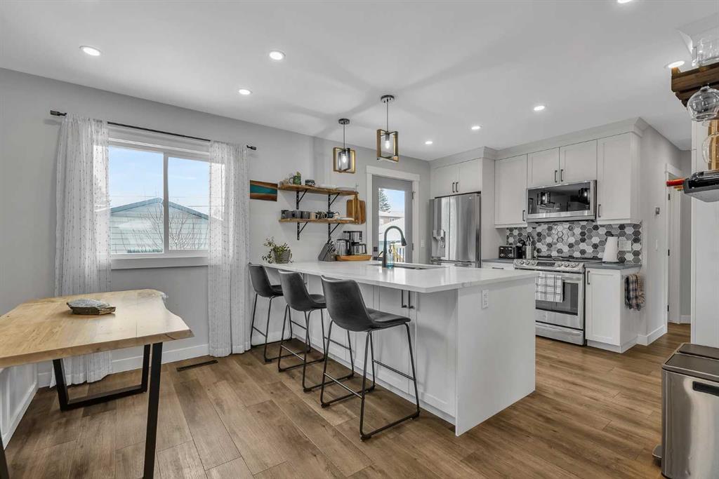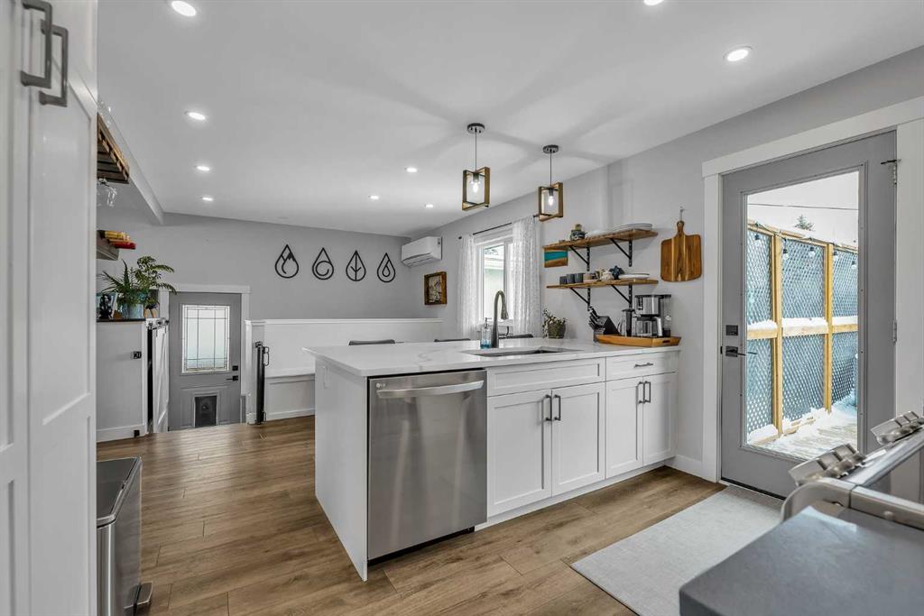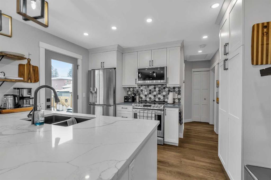 Welcome to this stunning, completely renovated bungalow in the heart of the historic Bowness community, where modern luxury meets classic charm. Every inch of this home has been meticulously updated, featuring all-new windows that flood the open-concept main floor with natural light. Durable luxury vinyl plank flooring flows seamlessly through the living area, where you can relax by the sleek electric fireplace or enjoy the climate-controlled comfort of the wall-mounted air conditioning. The chef-inspired kitchen is a true centerpiece, boasting gleaming quartz countertops, premium stainless steel appliances, and a large kitchen island with a functional breakfast bar. The primary retreat offers a private sanctuary complete with a spacious walk-in closet and a spa-like four-piece ensuite featuring double sinks and a custom glass-enclosed shower. A second well-appointed bedroom and an additional four-piece bathroom complete the main level. Efficiency and peace of mind are built into the bones of this home, which features an upgraded electrical panel, an on-demand hot water system, and a high-efficiency furnace. The fully developed lower level is designed for entertaining, offering a massive great room anchored by a cozy wood-burning fireplace and a stylish wet bar. Two additional bedrooms and another four-piece bathroom downstairs provide ample space for guests or a growing family. The outdoor living space is equally impressive, situated on a huge lot that includes a relaxing hot tub and plenty of room for summer gatherings. Car enthusiasts and hobbyists will love the oversized heated garage, supplemented by dedicated RV parking at the rear. Located just moments away from Bowness Park, the Bow River walking trails, and Winsport (COP), this home provides easy access to 16th Avenue, public transit, local schools, and boutique shops. This is a rare opportunity to own a turn-key masterpiece in one of Calgary’s most vibrant Northwest neighborhoods. Call today for your personal viewing.