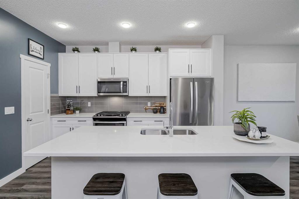 Step into this beautifully designed semi-detached home in the heart of Walden, offering nearly 1,500 sq. ft. of modern living space. From the moment you walk in, you’ll notice the 9-ft ceilings and the bright, open-concept layout that create a spacious and inviting atmosphere. The chef-inspired kitchen features a gas stove, sleek cabinetry, quartz countertops, and plenty of storage — perfect for everyday cooking and entertaining alike. Enjoy summer evenings with the gas line already installed for your BBQ, making outdoor gatherings a breeze. Upstairs, you’ll find 3 spacious bedrooms and 3 bathrooms, including a large primary suite with its own ensuite and walk-in closet. The home is thoughtfully designed to offer comfort and functionality for families, couples, or first-time buyers. Located in the sought-after community of Walden, you’re just minutes from everything — Shawnessy shopping centre, Legacy’s new amenities, South Health Campus, parks, schools, and major roadways like Macleod Trail and Stoney Trail. Whether you’re commuting downtown or heading out to the mountains, this location makes it easy. Don’t miss your chance to call this stylish and convenient home yours. 859 Walgrove Blvd SE offers the perfect balance of comfort, design, and location in one of Calgary’s most desirable communities.
