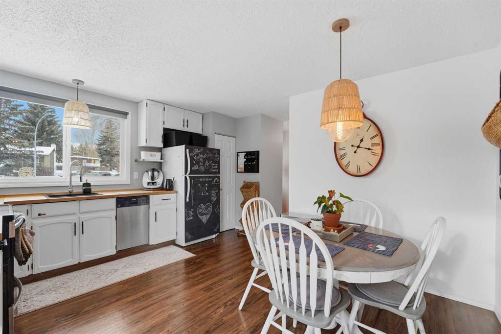 Tastefully updated 2-storey townhouse where comfort and coziness come together beautifully. Upon entry, you are welcomed by a modern mudroom that sets the tone for the home. The main floor features a spacious kitchen equipped with stainless steel appliances, offering both style and functionality for everyday cooking. A bright breakfast nook provides the perfect space for family meals, while a large window makes even doing dishes more enjoyable. Off the kitchen, the comfortable living room showcases a stylish accent wall and patio doors leading to an inviting backyard with a deck and mature trees—ideal for relaxing after a long day or enjoying your morning coffee. This level is completed by a convenient 2-piece bathroom. Upstairs, you’ll find three well-sized, bright bedrooms, a full bathroom, and a spacious closet offering ample storage for all your belongings. The recently developed basement adds even more living space, featuring generous storage behind a modern barn door, a large family room perfect for a kids’ play area, media room, or man cave, plus a versatile den ideal for a home office or quiet retreat. This home is truly an owner’s pride, with new fencing, gutters, and insulation completed in 2024 for added peace of mind. Enjoy a highly convenient location within walking distance to Superstore and the C-Train LRT station, and close to schools, Southcentre Mall, public library, golf courses, Trico Centre, Canyon Meadows Aquatic & Fitness Centre, and a variety of shopping options including Walmart and Canadian Tire. Additional highlights include your own private parking stall just steps away. This townhome offers the comfort of condominium living with the feel and warmth of a single-family home.