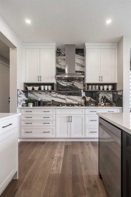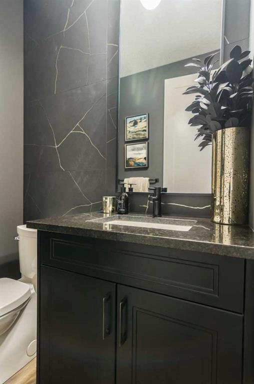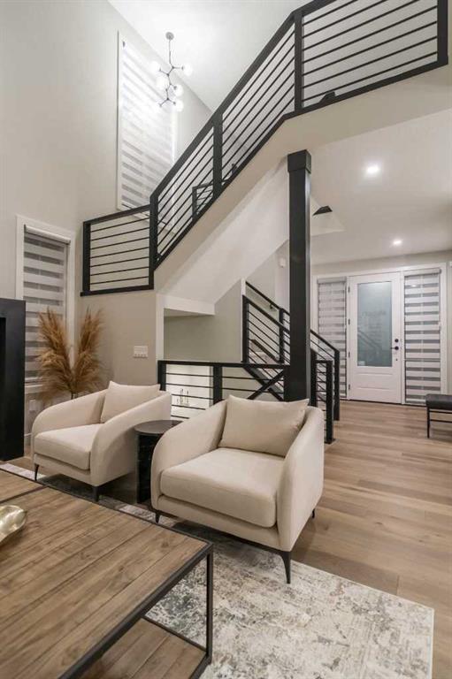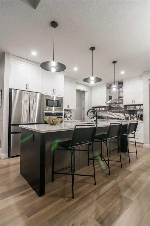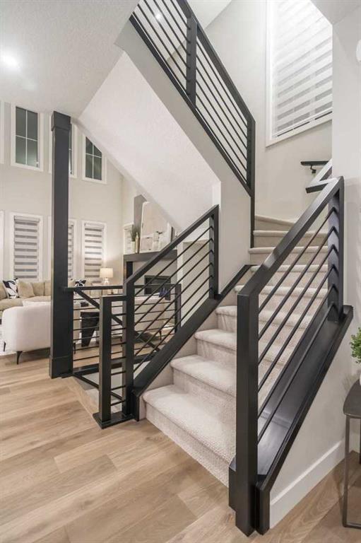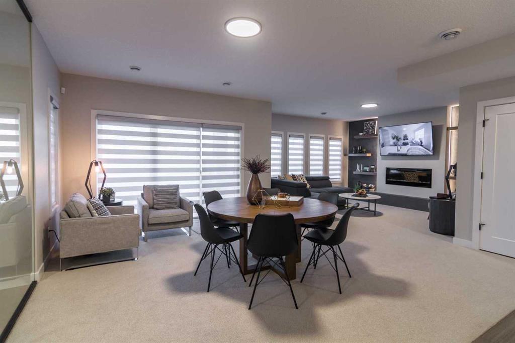 An incredible opportunity to own a brand-new estate home in the sought-after community of Cimarron Estates! Perfectly nestled in the heart of the neighbourhood, this home sits on an expansive 1/3 acre lot within walking distance to nearby amenities. Thoughtfully designed and extensively upgraded, it offers over 3,200 sq. ft. of developed living space across 3 levels, featuring 4 bedrooms, 3.5 bathrooms, 3 versatile living areas, a dedicated home office, a triple attached garage, and generous outdoor living space. The main level showcases a gourmet kitchen that overlooks the dining area and great room, highlighted by a dramatic open-to-below ceiling and a gas fireplace with a tile surround. The kitchen is equipped with an impressive appliance package, including a gas cooktop, chimney hood fan, built-in wall oven and microwave, pot filler, Silgranit apron-front sink, quartz countertops, and a full butler’s pantry/mudroom. This functional space is complete with a second fridge, sink, full upper-and-lower cabinetry, and a built-in bench with lockers—providing both style and everyday convenience. A front den (perfect for a home office) and a 2-piece powder room complete this level. Upstairs, you’ll find a spacious bonus room and a luxurious primary suite overlooking the backyard. The ensuite offers dual sinks, a freestanding soaker tub, and a walk-in shower, along with a generous walk-in closet. Two additional bedrooms, a full bathroom, and a convenient laundry room complete the upper floor. The fully developed walk-out basement is designed for entertaining, with a wet bar, two living/rec areas, a fourth bedroom, full bathroom, and a large mechanical room with additional storage. The exterior of the home is just as impressive, with Hardie board siding and an expansive main-level deck overlooking the greenspace behind the property. Designed with both elegance and functionality in mind, this home provides a true estate lifestyle inside and out. Currently under construction, this stunning estate home will be move-in ready in winter 2025/2026. Please note: photos are from a past project and may not be an exact representation of the home for sale.