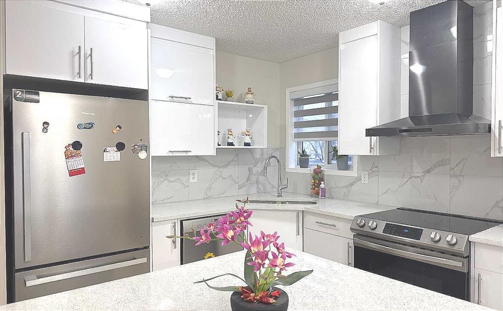 Welcome to this beautiful and well-cared 1288sf 2-storey home. New asphalt shingles and some siding. New kitchen cabinets & quartz countertops, central quartz kitchen island, and quartz vanities all in neutral/modern colours. Over-size detached garage (Over size 24’x24′). This home is just minutes to the TNT shopping centre, Highway #2/Stoney Trail, yet it is situated on a quiet CIRCLE. A total of 5 bedrooms and 21/2 baths. Side entrance to the fully developed basement.