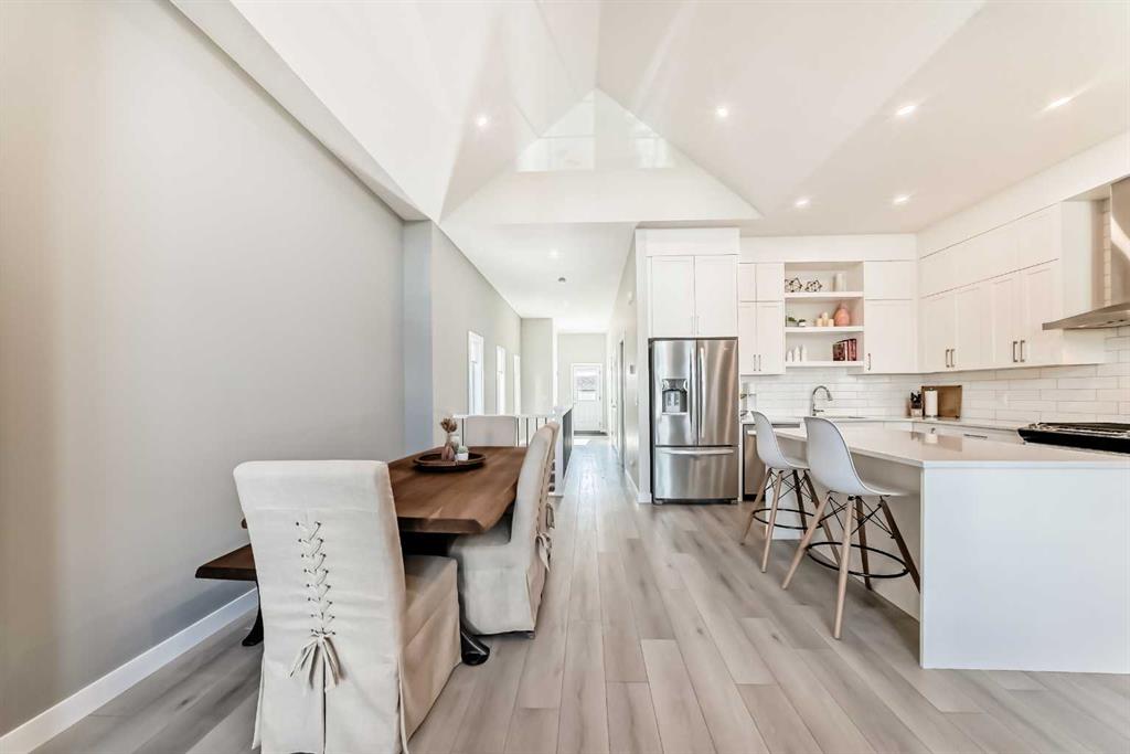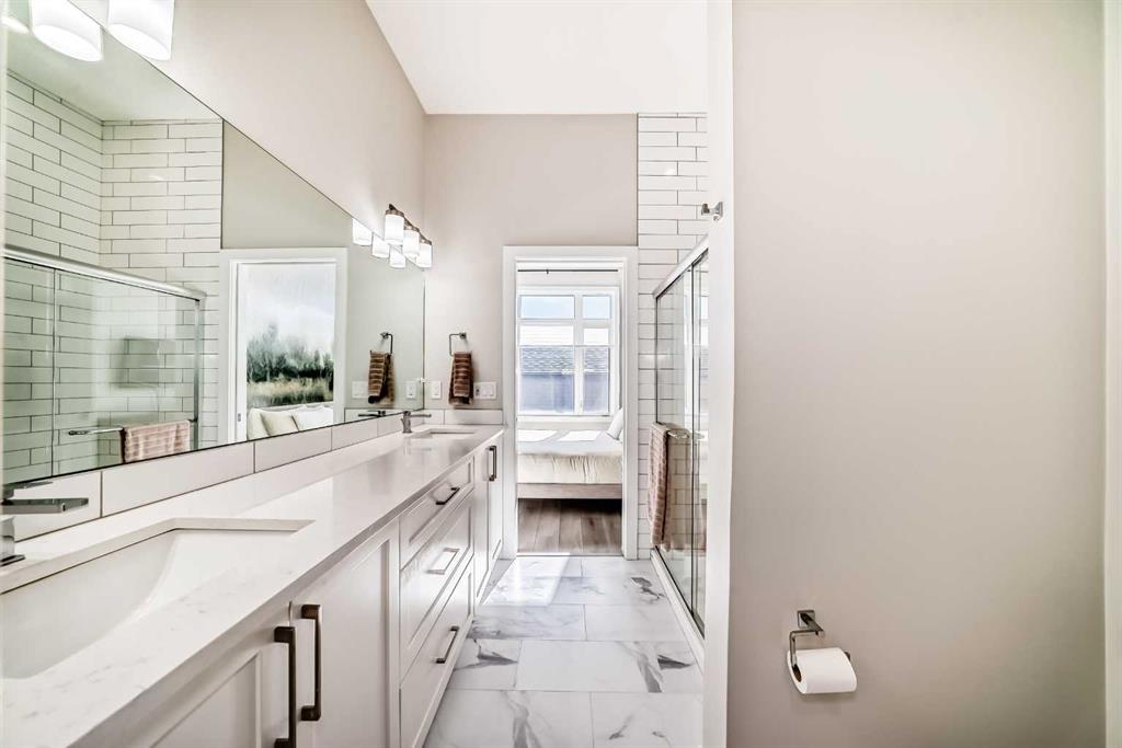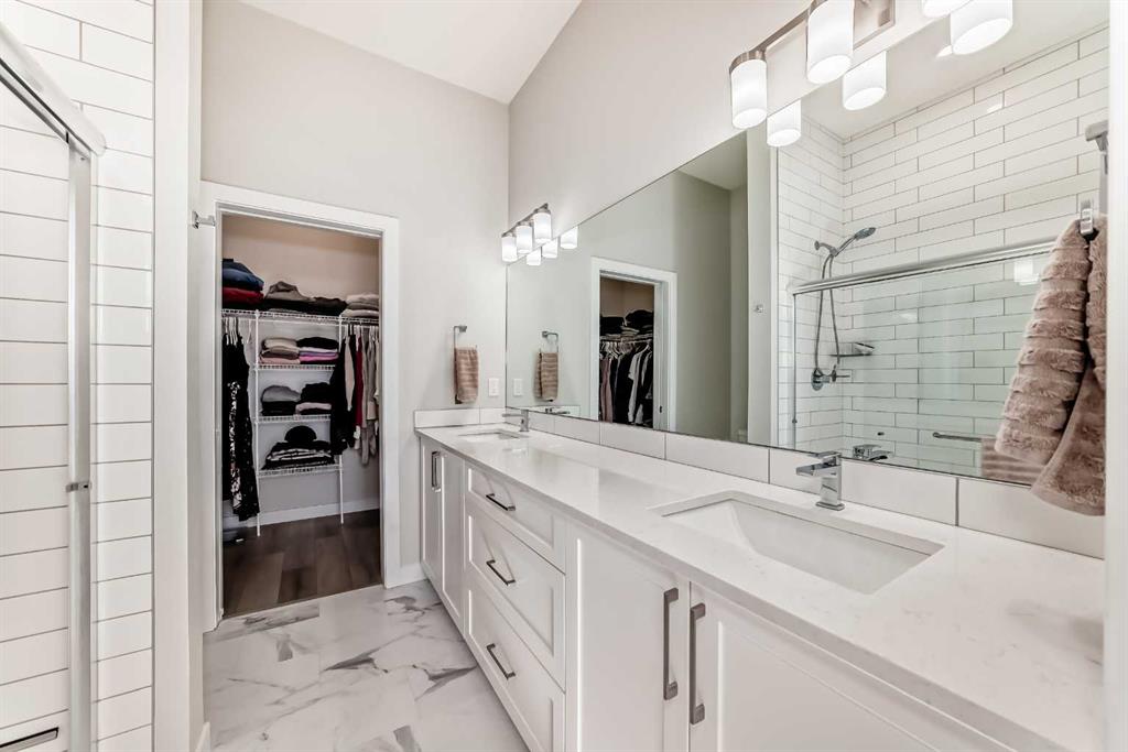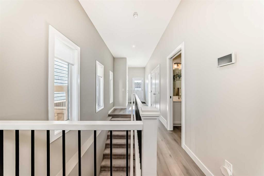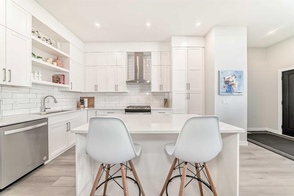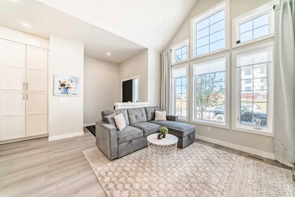 Welcome to 86 Wolf Crescent, a stunning former show home that blends modern craftsmanship, thoughtful upgrades, and timeless design. With over 1900 SQFT of developed living space, every detail has been carefully curated to elevate comfort, function, and style — truly move-in ready with premium finishes throughout. Step inside and immediately notice the vaulted ceiling, open-concept layout, and elegant design touches that make this home stand out. The chef-inspired kitchen features upgraded cabinetry, quartz countertops, a gas range with a chimney hood fan, a built-in microwave in the island, and upgraded dishwasher and fridge — perfect for cooking and entertaining. The spacious living area centers around a beautiful electric fireplace with a full-height stone surround, mantle, and remote-controlled visual features — creating the perfect cozy atmosphere. Upstairs, the primary suite is a true retreat, featuring a feature wall, decorative drapery, and an upgraded ensuite with 36” vanity height, fiberglass shower base with full-height tile, and luxury vinyl tile (LVT) flooring. The walk-in closet and bedroom have also been upgraded to luxury vinyl plank (LVP) for a seamless, sophisticated look. Additional thoughtful upgrades include, LVP flooring throughout the main level, LVT in all bathrooms, 8lb SmartCushion underlay in the basement carpet, 3-ton air conditioner, Tankless water heater, Gas line for BBQ, Exterior soffit lighting, Broom-finish concrete patio for a low-maintenance backyard, Detached double garage, Front brick finish for lasting curb appeal. This home perfectly combines style, function, and comfort, with every detail already taken care of. Move in and enjoy the benefits of a former show home — all the upgrades, none of the hassle.
