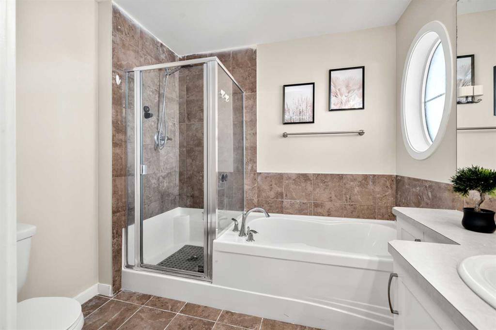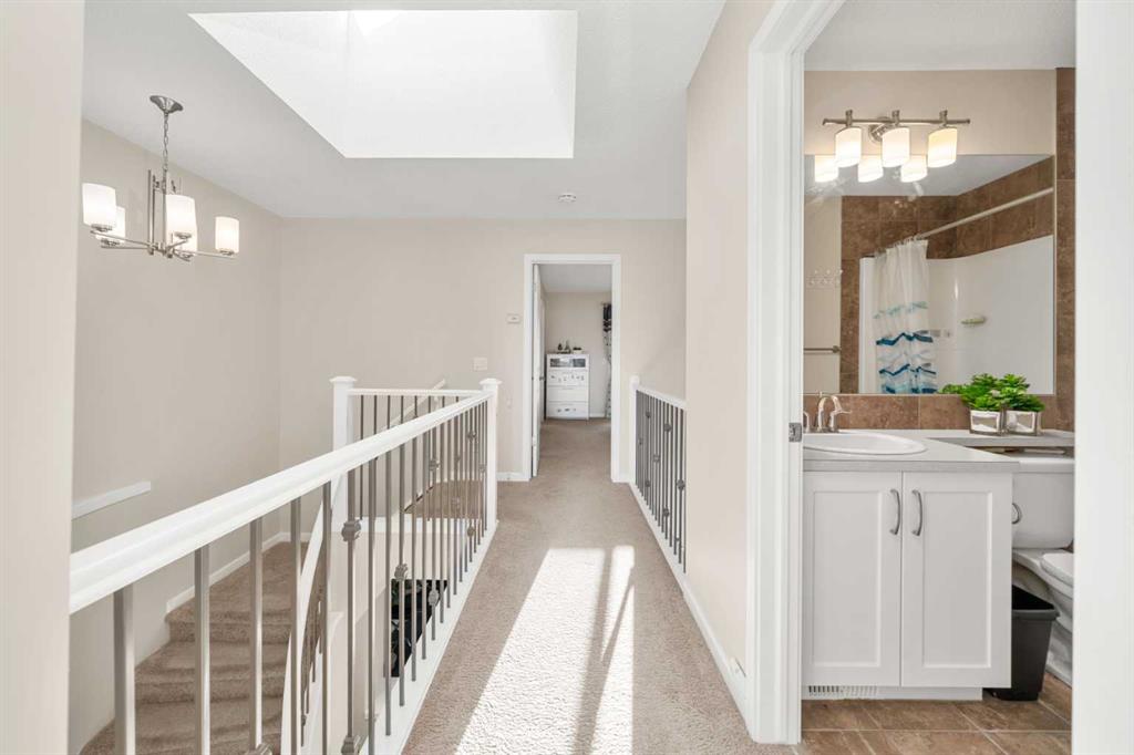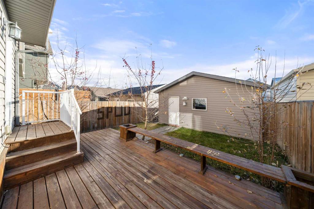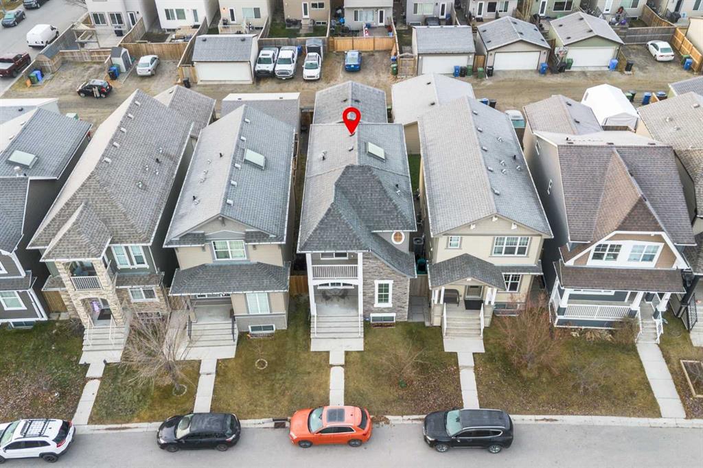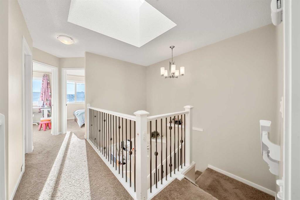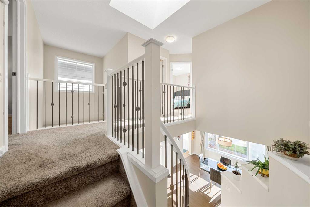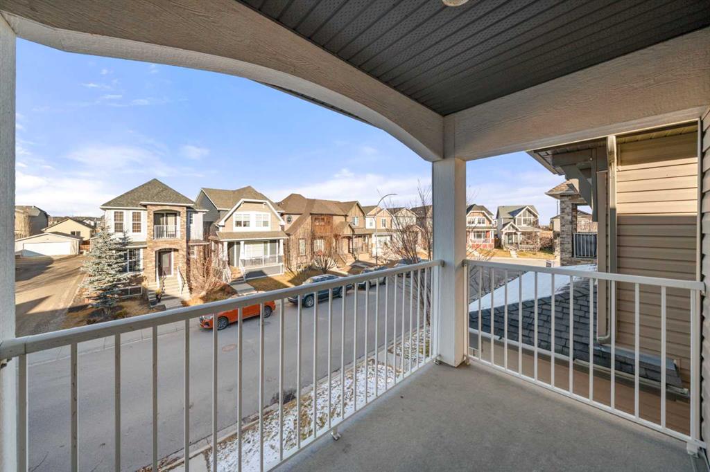 Welcome to the Heart of Cranston – Where Community Meets Comfort! Located on a quiet street in one of Calgary’s most beloved family-oriented neighbourhoods, this immaculately maintained Belvedere model offers the perfect blend of comfort, function, and architectural charm. With 3 bedrooms upstairs — including a spacious primary suite with a private balcony and 4-piece ensuite — this home is ideal for growing families or couples seeking room to thrive. The main floor features gleaming hardwood flooring, a stylish two-piece powder room, and an open-concept living and dining area anchored by a cozy gas fireplace. The vaulted ceiling over the kitchen floods the space with natural light, highlighting the rich granite countertops and sleek stainless steel appliances. Upstairs, you’ll love the elegant arched staircase, bright open hallway with skylight, and generously sized secondary bedrooms. The fully finished basement offers even more space to work or relax, with a large rec room, dedicated office, full bathroom, and a well-appointed laundry area. Step outside to your sunny south-facing backyard—complete with a spacious deck, green grass, and room to play or entertain. The double detached garage provides plenty of room for parking and storage. Cranston is a welcoming, mature community known for its established schools, shopping plaza, and community events, making it a top pick for families and newcomers alike. Enjoy easy access to the ridge, river pathways, and endless outdoor recreation — all while being just a short drive from major city amenities. This home is move-in ready and offers so much more than meets the eye. Come experience the peace, pride of ownership, and neighbourly charm that Cranston is known for!