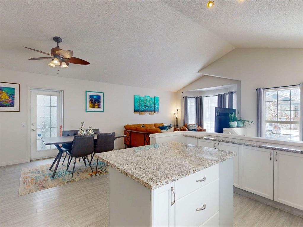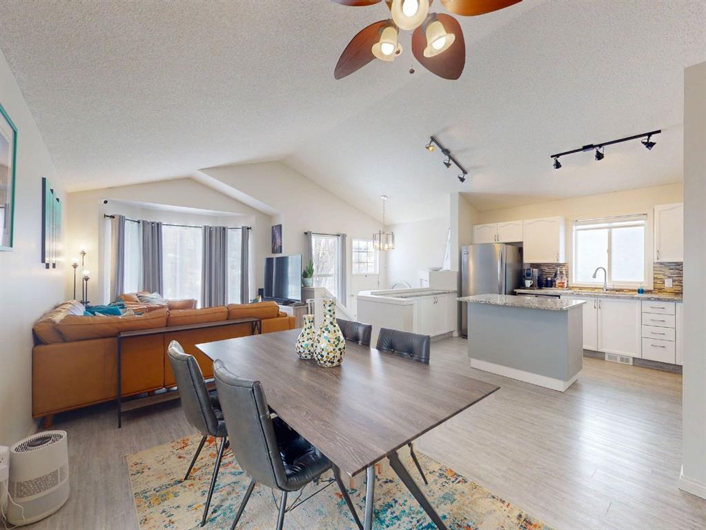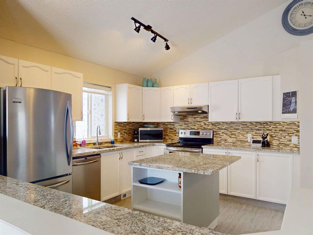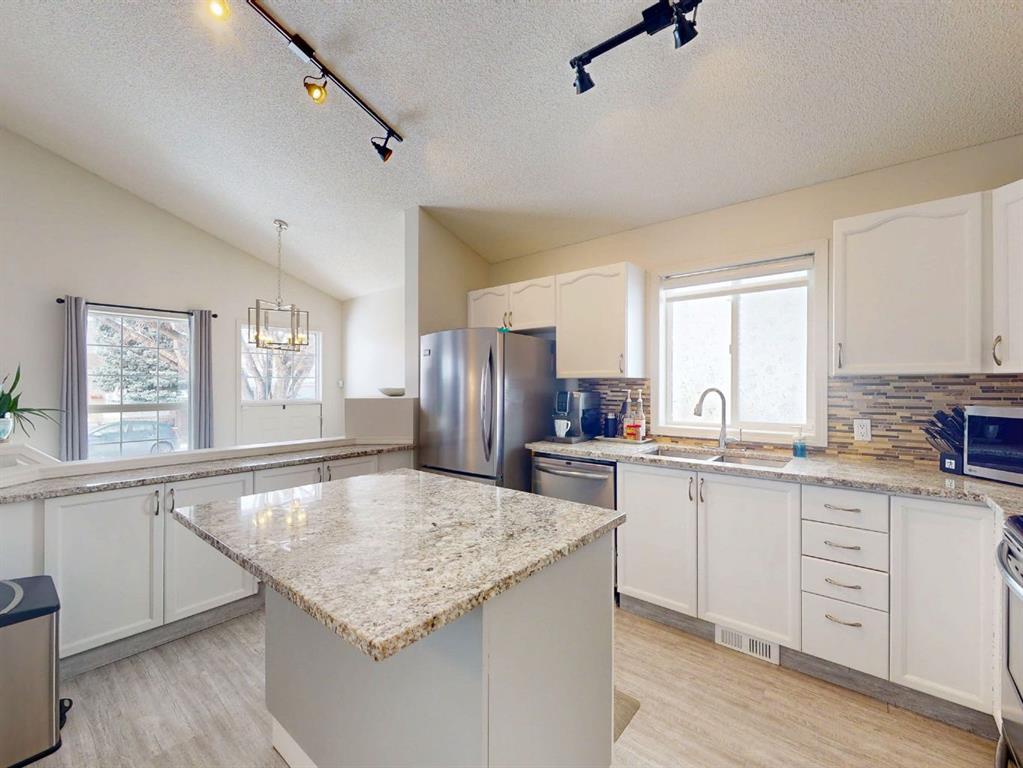 Located on a quiet crescent in the community of Hidden Valley, this renovated 4 bedroom and 2 full bathroom bi-level with modern decor and vaulted ceilings is a must see! Main floor highlights include vinyl luxury plank flooring, white kitchen cabinetry, granite countertops, stainless steel appliances, mosaic tile backsplash, a kitchen island with breakfast eating bar, spacious living room, large dining area, a common 4 piece bathroom and 3 bedrooms offering plenty of closet space. The lower level offers a large rec room with a fireplace surrounded by a built-in was unit, a flex space perfect for a home office or gym, a 3-piece bathroom, a large 4th bedroom and plenty of storage space. Enjoy the summer days in the fully fenced yard, brand new large composite deck with privacy dividers. Over 85k spent on the backyard and the brand new double detached garage and concrete retaining wall. Newly renovated bathroom upstairs with fresh paint throughout, Located close to schools, playgrounds, parks, shops, restaurants and more. This home needs nothing but new owners to make it complete. Book your viewing today before its gone!!!!!