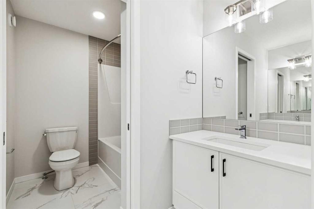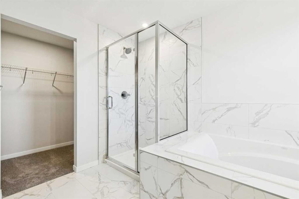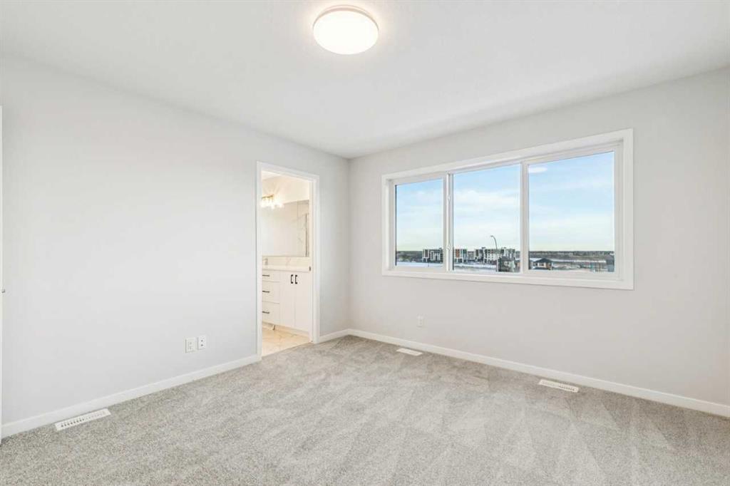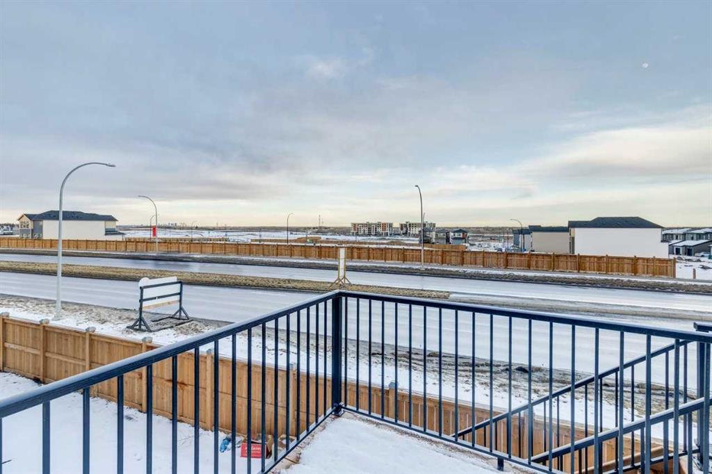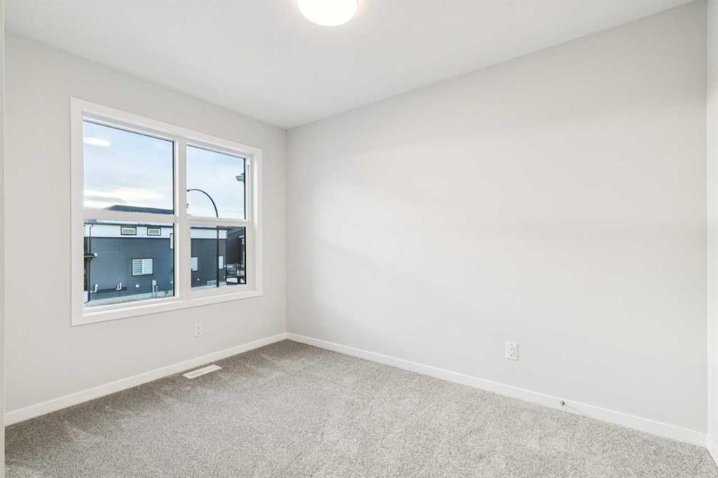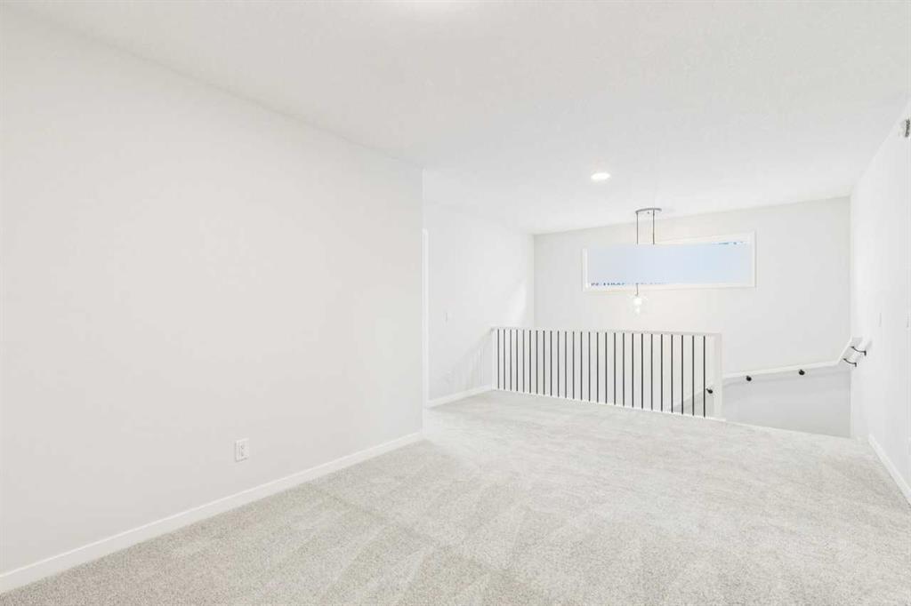 This walkout home offers a bright, practical layout designed for everyday living and entertaining. The main floor includes a front flex room and an open concept living, dining, and kitchen area anchored by a fireplace. The kitchen features tight to ceiling cabinetry and connects seamlessly to the main living space. Added windows throughout enhance natural light, and 8 ft main floor doors add to the open feel. Upstairs, four bedrooms are arranged around a central bonus room with light from the stairwell window. The primary bedroom includes an upgraded five-piece ensuite with a soaker tub, tiled shower, dual sinks, and a walk in closet. Additional upgrades include railing throughout the home, a large walkout deck with stairs to the backyard, appliance allowance to select appliances that fit your lifestyle, and a tankless water heater. The home sits on a 108 ft long lot with no neighbours behind, providing added privacy and space. The walkout basement is roughed in for future potential development, offering long term flexibility. Never lived in and comes with full new home warranty coverage, this property represents a rare final phase opportunity in Belmont.