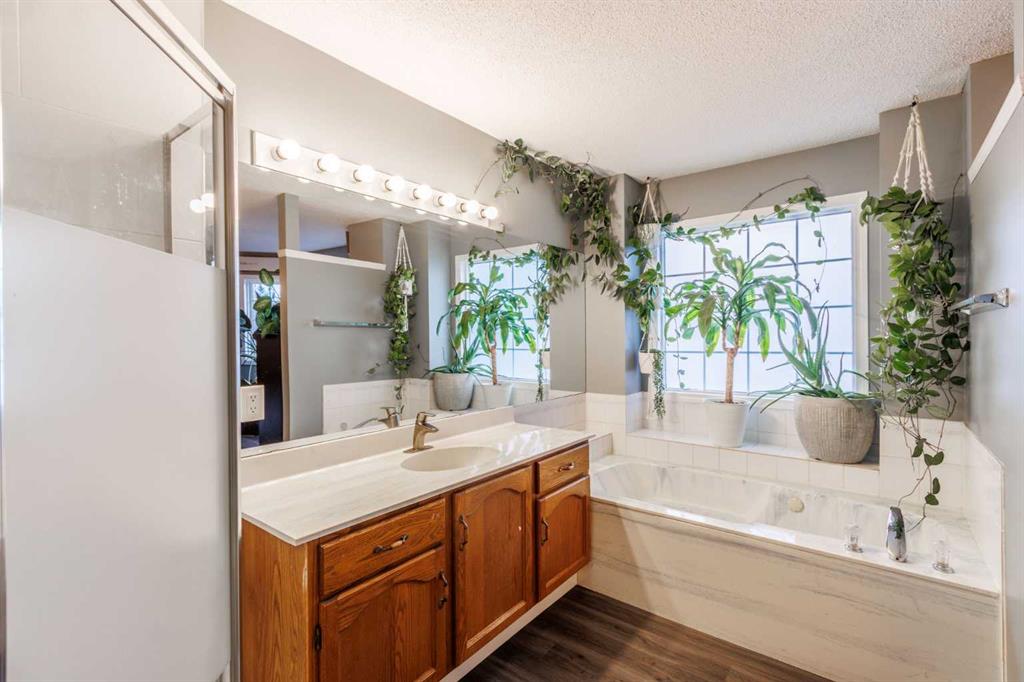 Where Chinook warmth meets Rocky Mountain cool. This is suburban living done with intention — just under 2,100 sq. ft. of open, light-filled space in one of Calgary’s most established communities. The moment you walk in, the line of sight says everything: front door ? custom staircase ? backyard. It’s a visual runway of calm and connection.The vaulted ceilings rise above the west-facing family room and formal dining, catching golden-hour light that spills into the home — a wide, functional space designed for real life. Think generous prep zones, storage that actually stores, and a kitchen sink framed by backyard views (because yes, the best family homes are built around that window).A wood-burning fireplace with gas starter brings romance to the winter months, while main floor laundry and a fourth bedroom/office deliver everyday practicality. Upstairs, three more bedrooms keep the family close — without feeling crowded.Fresh paint, new vinyl floors, and baseboards reset the tone, but it’s the behind-the-scenes upgrades that make this home truly next level: dual high-efficiency furnaces (2018), twin A/C units, Trane CleanEffects air cleaner (2021), water softener and reverse osmosis system (2023), and full poly-B to PEX replacement.Out back, low-maintenance turf, pavers, a BBQ gas line, and a hot tub make this yard your year-round escape. Even the garage comes finished — insulated, drywalled, and painted — because in Calgary, that’s more than a perk; it’s a power move.88 Woodford Close SW — a home that blends function, flow, and a little firelight.