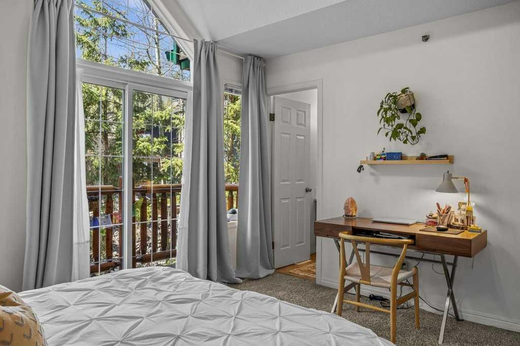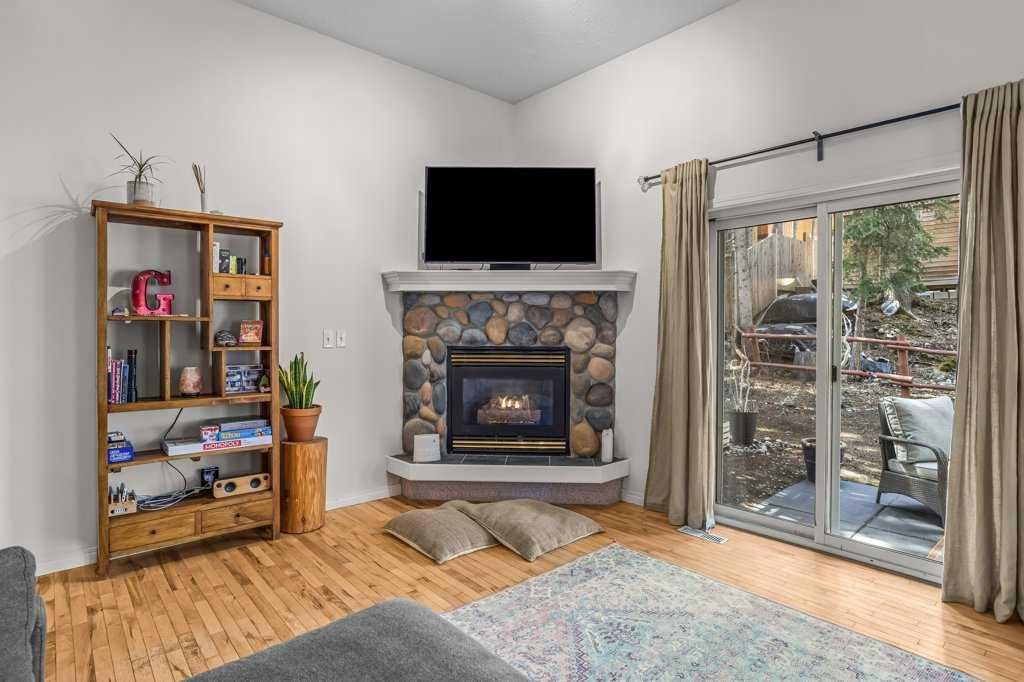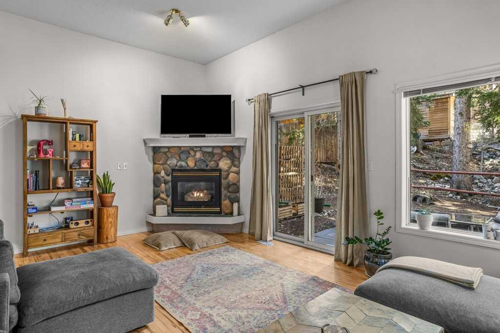 Situated in Rundle Mountain Estates, this well-maintained end-unit townhouse offers a serene forest setting and a quiet, private mountain retreat. With three bedrooms on the upper level and multiple living areas across three levels, the layout is ideal for families or a weekend escape. The bright, open-concept main floor features a functional kitchen, spacious dining area, and inviting living room with a cozy gas fireplace, while large windows bring in natural light and views of the surrounding trees. A two-piece bathroom completes this level. Upstairs, the primary suite includes a walk-in closet, ensuite, and private balcony, alongside two additional bedrooms and a full bath. The lower level provides flexible space for a family room, media area, or extra bedroom, plus laundry and storage. Complete with multiple outdoor spaces, an oversized single garage, and close proximity to Quarry Lake, the Nordic Centre, and downtown amenities.