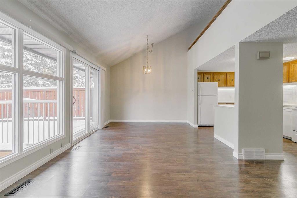 Located in the heart of Palliser, this well-kept townhome offers an outstanding opportunity in a popular, amenity-rich community! Surrounding by mature trees, the home features a sunny east-facing backyard with a private 10′ x 16′ deck and fully fenced yard – a perfect place for morning coffee, gardening, or quiet outdoor time. The entry level welcomes you with a generous foyer, a convenient 2-piece bathroom, and direct access to the single attached garage. Up one level, you’ll find a bright and inviting living space with vaulted ceilings, laminate flooring, and a gas fireplace. Large windows and a sliding patio door bathe the space in natural light and open directly onto the large deck and private yard. The kitchen connects seamlessly to the dining area, making it ideal for everyday living and entertaining. The upper level offers two spacious vaulted bedrooms and a full 4-piece bathroom. The primary bedroom includes a large walk-in closet and direct access to the bathroom. One level above, a versatile loft space provides endless possibilities—home office, exercise area, hobby room, or reading nook. There is additional space in the developed basement, adding even more flexibility and storage. You’ll appreciate having parking for two vehicles with the attached single garage and the covered driveway, and there is ample street parking available for guests. Enjoy the home as-is in its mostly original yet very clean condition, or renovate to reflect your personal style. Ideally situated close to Southland Leisure Centre, schools, parks, transit, and the Co-op grocery store, this is an outstanding opportunity to get into a great community at a reasonable price!