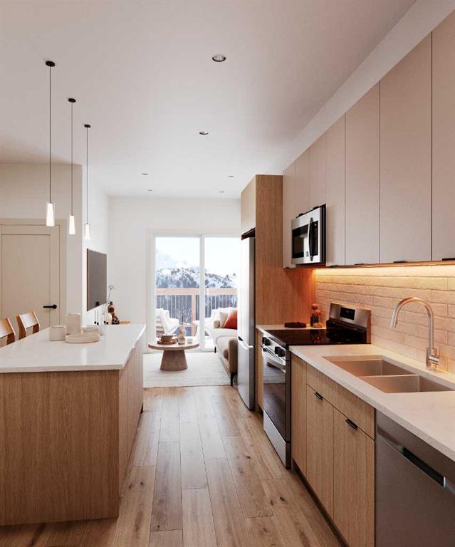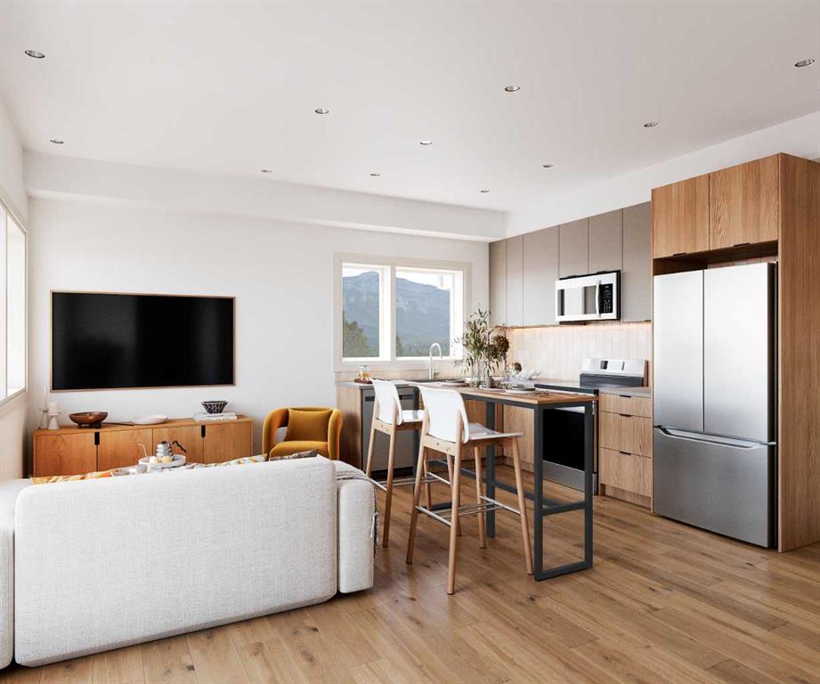This 1-bedroom, 1-bath CORNER UNIT offers pristine interior selections, brand-new stainless steel appliances, 10-year new home warranty, and an unbeatable location! Located on a quiet street just minutes from downtown Banff’s cafés, restaurants, and everyday amenities, McHardy Residences presents a rare opportunity to own a newly built home designed for full-time mountain living. The open-concept layout provides practical, comfortable living for those who call Banff home year-round including a generous living room, sun bathed front deck, and in suite laundry. Set in a peaceful neighborhood yet just moments from the energy of downtown, this unique property delivers the lifestyle locals are looking for: space, serenity, and a true connection to the mountains. Additional storage lockers provide valuable room for all your mountain gear.