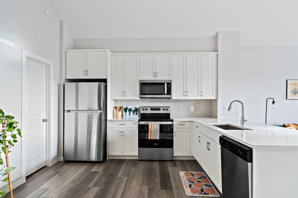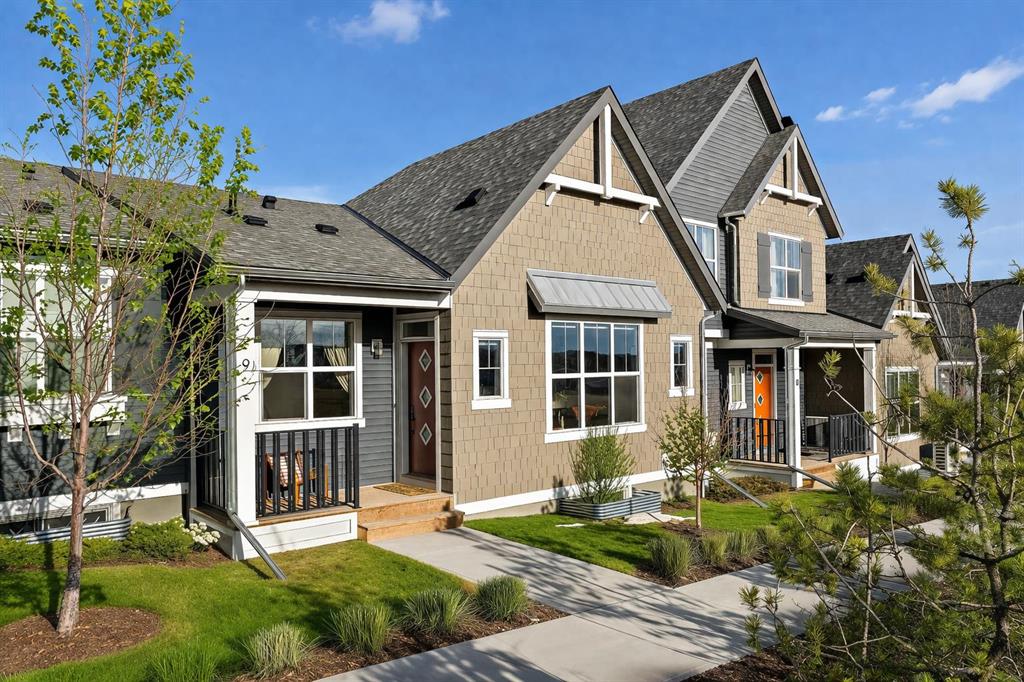 An exceptional opportunity to own a one-of-a-kind, maintenance-free townhouse overlooking green space in the vibrant community of Livingston. Offering nearly 1,000 sq. ft. of single-level living, this meticulously maintained home blends comfort, functionality, and timeless design. The grand main living area features resilient luxury vinyl plank flooring and a soaring vaulted ceiling spanning the living room and kitchen, creating a bright and airy atmosphere enhanced by large windows and South-facing exposure that flood the space with natural light. The living room is positioned at the front of the home, where expansive windows overlook the peaceful green space, providing a serene and private setting. The spacious kitchen showcases timeless white shaker cabinetry, stainless steel appliances, quartz countertops, a central peninsula island with a breakfast bar, a corner walk-in pantry, and abundant storage. There is ample room for a flexible dining area, making the space ideal for both everyday living and entertaining. Overlooking the living room, the kitchen layout is perfect for hosting or for those with young children. Completing the main level is a rear mudroom with direct access to the attached garage, a convenient 2-piece powder room, and a dedicated laundry room. The spacious primary bedroom is also located at the front of the home, offering additional green space views. It features a generous 4-piece ensuite with dual sinks, a walk-in shower, and a walk-in closet with upgraded shelving. The lower level awaits future development, offering excellent potential for a large recreation room, additional bedroom, bathroom, and storage space. An insulated attached garage completes the home, keeping your vehicle secure and clean year-round. This home is ideally situated with nearby shopping, restaurants, and cafes all within walking distance or a short drive.. Daily commuting is made easy with nearby public transit stops and quick access to Stoney Trail. Don’t miss this opportunity to own a fantastic, low-maintenance property in one of Calgary’s most desirable communities – Livingston.