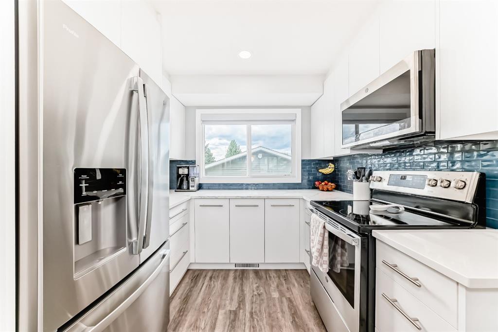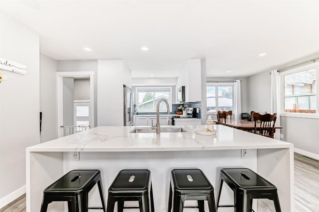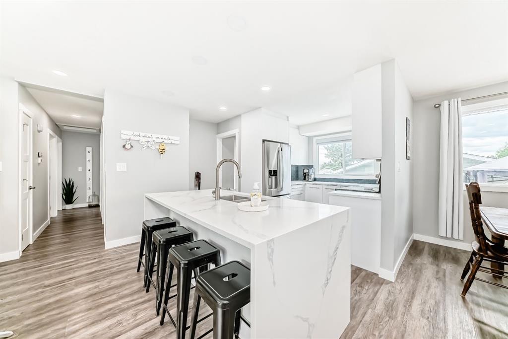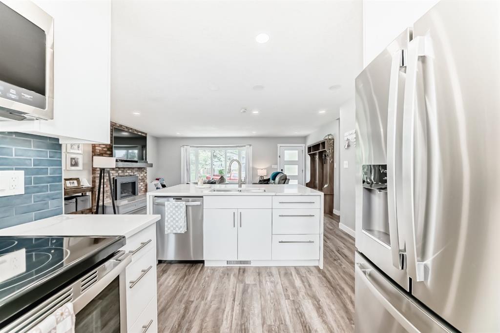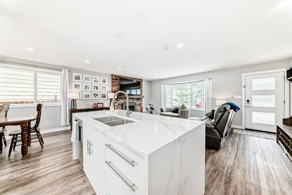 Wow! Houses like this do not come by often. Completely renovated TOP to BOTTOM, this incredible BUNGALOW is turn key ready! Walk in and notice the new open concept! Beautiful kitchen with large island, living room & dining room all seamless. Down the hall you’ll find a 4pcs bathroom, 2 great sized bedrooms off the front and a peaceful primary suite & 2pcs ensuite off the back. Downstairs is a large family room, laundry, 4th bedroom, a hobby room and another 4pc bath. Updates include: All new fingerprint proof cabinets including under mount lighting, quartz counter tops (waterfall island), all new appliances, new lighting throughout, new gas fireplace, new hearth and mantel, new tub, toilets and sinks, in floor heating in bathrooms, new windows, all new flooring, AC, new doors, trim, paint, flooring, all closets added organizers, Polyb removed, new larger hot water tank, new window installed in dining room facing west, all new electric plugs and switches, heater in garage & more!