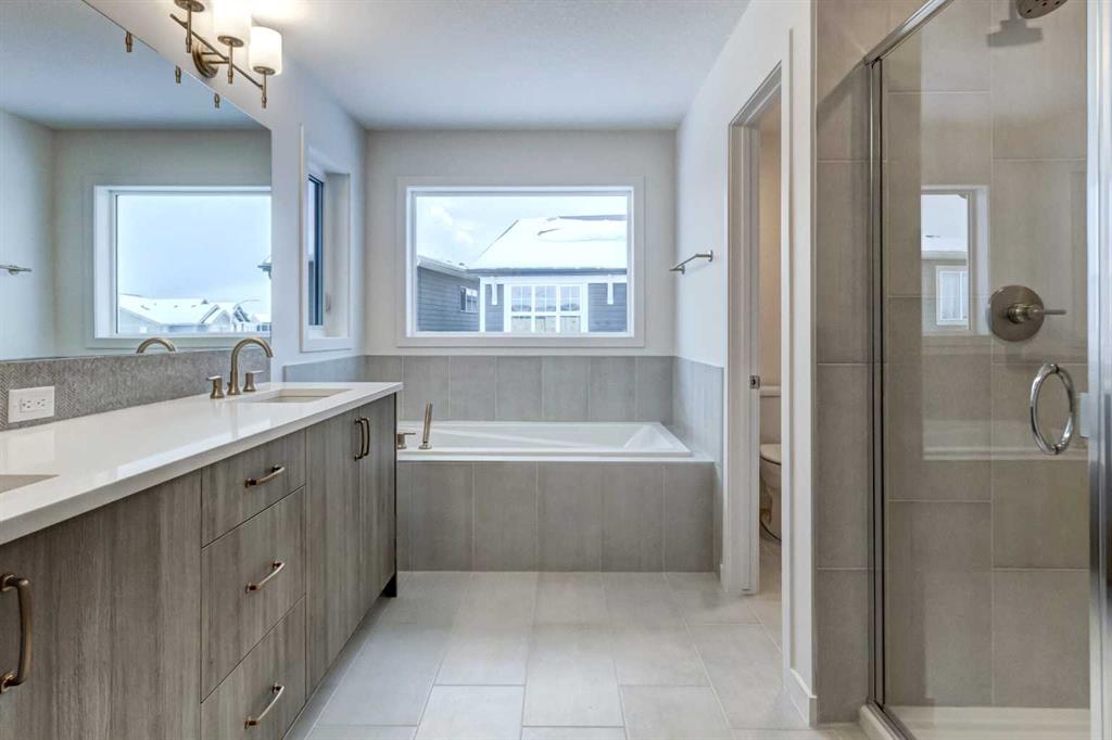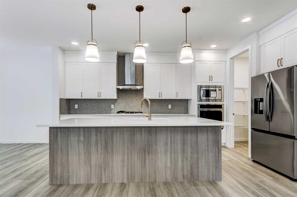 Be prepared to be impressed from the moment you step inside! Introducing the PERCY—brand new, never lived in, and built by Excel Homes, an award-winning builder with over 35 years of experience, more than 15,000 homes constructed, and 75 industry and design awards. Excel continues to deliver exceptional quality, innovation, and peace of mind. Offering 2139 sq ft of beautifully designed living space plus a fully developed basement with a side entrance and a legal basement suite, this home checks every box. A spacious foyer welcomes you to the main floor, where a versatile flex room provides the perfect home office or study space. Luxury wide-plank flooring spans the entire level, flowing into the bright, airy great room that opens onto an exquisite kitchen featuring abundant cabinetry and drawers, a corner pantry, a large island with seating for four, a gas range, and a built-in microwave/oven combo—making meal prep a joy. The dining nook at the rear of the home overlooks the southwest-facing backyard and comfortably fits large family gatherings, while the great room’s electric fireplace adds warmth and style. The side-entry garage allows for an expansive mudroom, and with 27′ on the long side, it easily accommodates a full-sized truck. Metal railings guide you upstairs to a central bonus room with vaulted ceilings and pot lighting. The grand primary suite offers a luxurious retreat with a 5-piece ensuite showcasing 24″ tile floors, quartz counters, a tile-skirted soaker tub, and a double shower, plus a large walk-in closet that conveniently connects to the laundry room for effortless organization. Two additional generous bedrooms share a well-appointed family bath with quartz counters. The legal basement suite impresses with big windows that fill the space with natural light and includes a full kitchen with island and quartz countertops, complete appliance package, spacious family room, large bedroom with a huge window, 4-piece bath, and its own private laundry. Separate utilities ensure complete independence for the suite