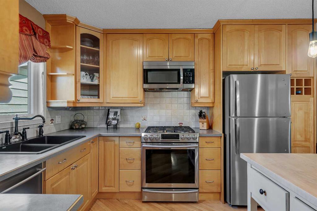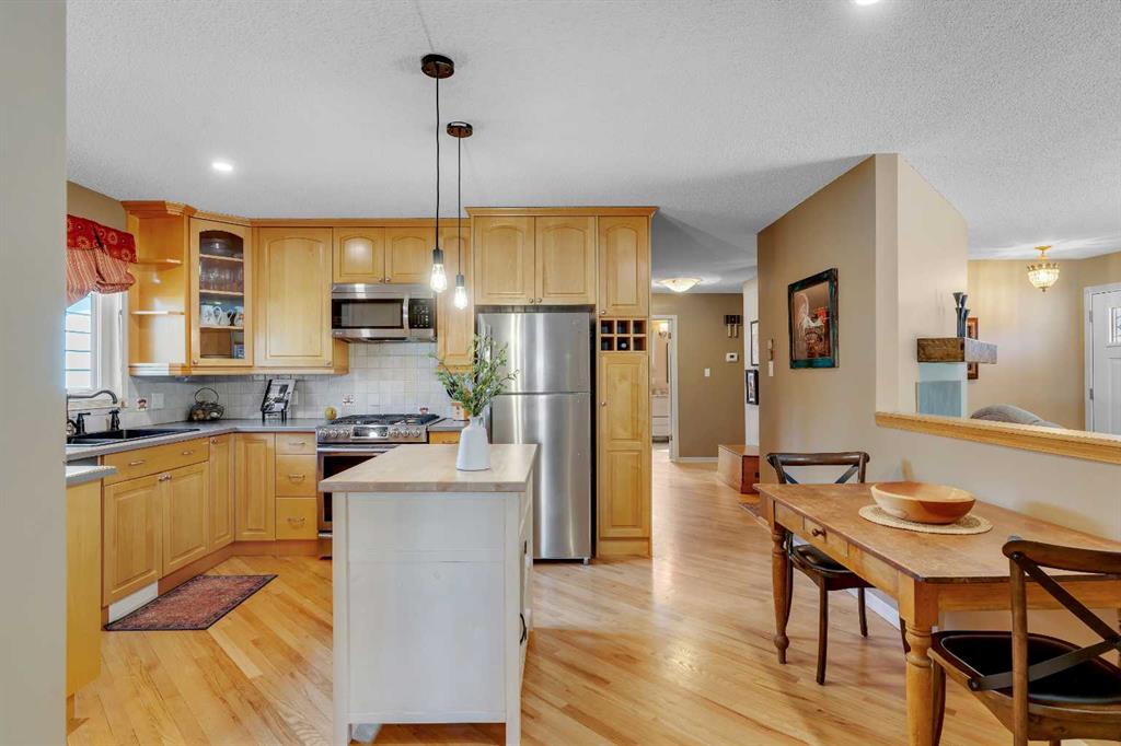 2700 SQFT OF DEVELOPED SPACE | OVERSIZED GARAGE | QUIET CUL DE SAC | Welcome to 9 Mountain Place, located in Okotoks, one of the most family friendly towns you’ll find. Situated in the established low density neighborhood of Rosemont, with large trees and just minutes to historic downtown, this location truly has it all. As you enter the home you’ll notice the original hardwood flooring throughout + fresh paint, along with an abundance of light flowing through the numerous large windows. The main level features a large living room centred around a wood burning fireplace and large west facing windows, flooding the space with light. There is an additional seating area that could double as a home office, den, or kids play area. The large kitchen features all brand new stainless steel appliances and plenty of cabinet space flowing seamlessly into the dining area, large enough to seat 10 and a perfect setting for entertaining family & friends. The primary bedroom allows for a wide range of flexibility in terms of furniture & offers ample space for almost any couple, with all carpet replaced in 2023 and a large west facing window. The spa inspired main bathroom is one of the focal points of this property, architecturally designed in 2014 and includes in floor heating, granite counters, an Italian tile stand up shower & a beautiful freestanding bathtub. This level also includes 2 additional bedrooms with large windows & plenty of storage space. As you move downstairs you will enter the large mudroom, an ideal place for the kids to hang their coats & backpacks, with plenty of room to wash the paws of your furry friends, another feature you do not typically find in a bungalow. The fully developed basement features a large living and rec space, a huge bedroom with plenty of closet space and a 3pc bathroom, along with a large laundry room with even more storage. Some of the recent updates totalling more than 85K since purchase include a new furnace and hot water tank in 2016, new shingles on the home in 2015 and on the garage in 2023, added attic insulation, new front and back doors, all new appliances, and not to be overlooked is the additional parking in the front driveway, perfect if you have a boat or smaller RV. The professionally landscaped yard features a new cedar deck and pergola in 2023, new cedar fence in 2011, and includes a wide range of trees, perennials, rose bushes, flowering shrubs along with vines and stepping stones throughout. Enjoy a morning cup of coffee in the sun this summer from this incredible private backyard, with direct access to the oversized 23×23 garage. Located just minutes away is Elizabeth St. with numerous local eateries, coffee shops, ice cream shops and endless exploring along the Sheep River pathway system that runs right through town, with schools, parks and pathways all within walking distance. If you are looking for a family friendly neighborhood & town to either raise a family or retire to a peaceful setting, this is the one for you.