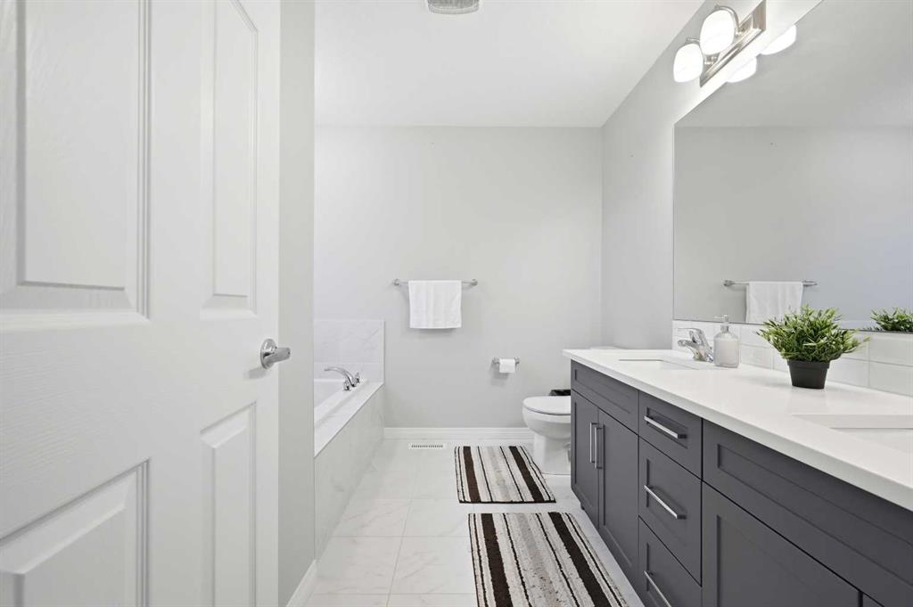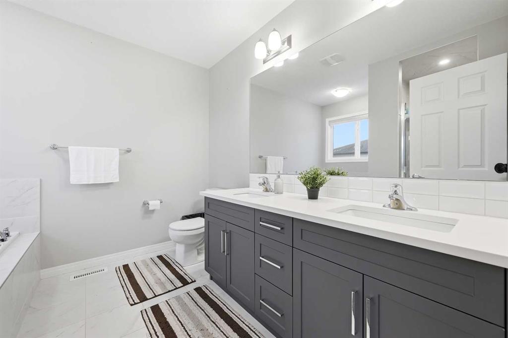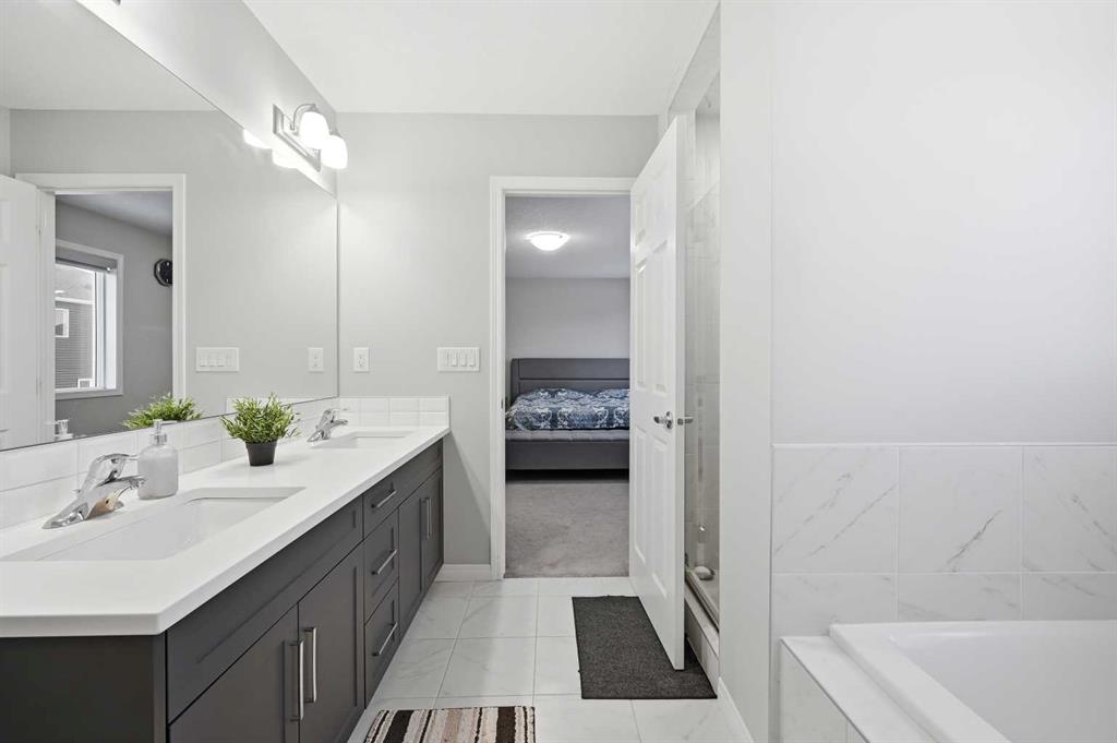 Upstairs, you’ll find three generously sized bedrooms, a Bonus room and a well-appointed 4-piece main bathroom. The primary retreat offers a stunning ensuite complete with his-and-her sinks, a relaxing soaker tub, and a separate stand-up shower, creating a true spa-like experience.