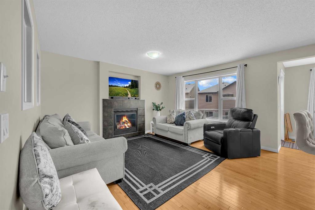 Step inside and be greeted by a warm and inviting atmosphere with rich hardwood flooring that flows throughout the main level. The open-concept kitchen is a dream for home chefs, featuring stainless steel appliances, a breakfast bar, and a spacious pantry—perfect for keeping all your dry goods neatly organized. The adjoining living room is the heart of the home, complete with a cozy gas fireplace, making it the perfect space for family gatherings or relaxing after a long day.