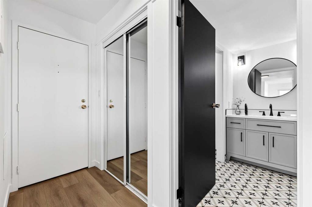 Beautiful fully updated 2 bedroom and 1 bath home. Open south facing floor plan. You will fall in love with the gorgeous kitchen with quartz countertops and designer backsplash, shiplap features along with a fantastic buffet with pantry for even more wow. All new appliances with manufacturer warranties for peace of mind. The large wrap around balcony provides even more city views and lots of room to entertain. New in-suite laundry adds another level of convenience. This unit also features beautiful waterproof luxury vinyl plank flooring throughout, a large 4-piece bathroom with designer tile and a 48” vanity. Underground secure parking is included. Additional parking in the gated secure ground level can be privately rented (based on availability). Don’t miss this opportunity to call this place home! Call your favorite realtor and book a showing!